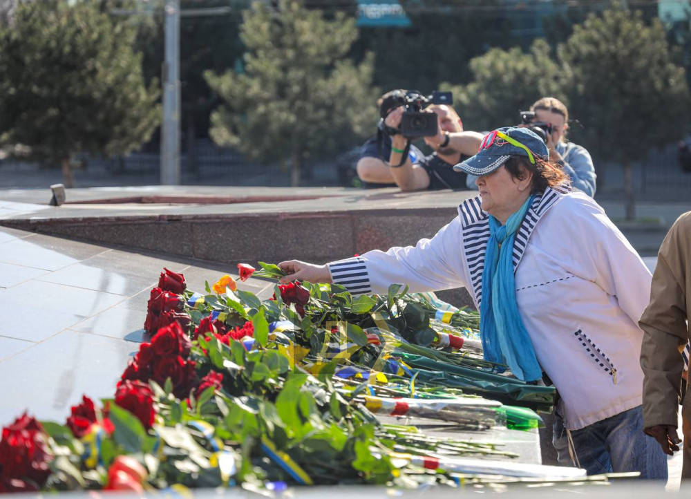 Людей пускають по одному, щоб не створювати скупчення біля пам'ятника, втім, охочих принести квіти небагато.
