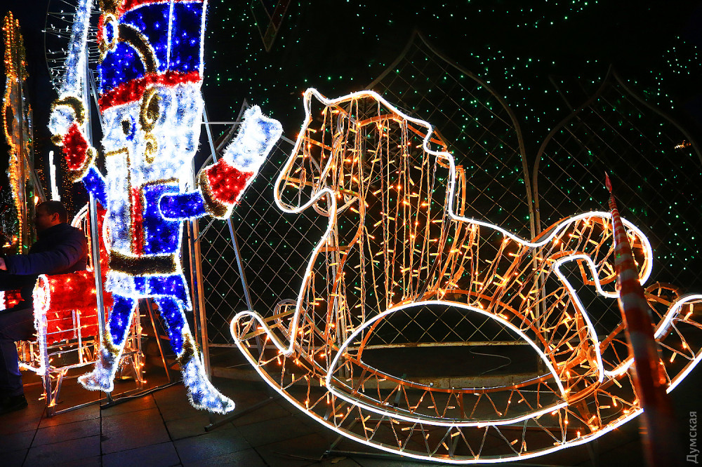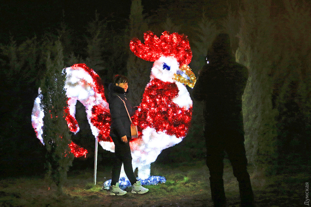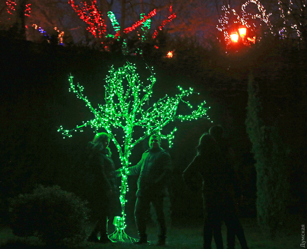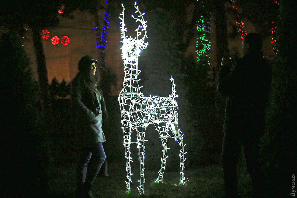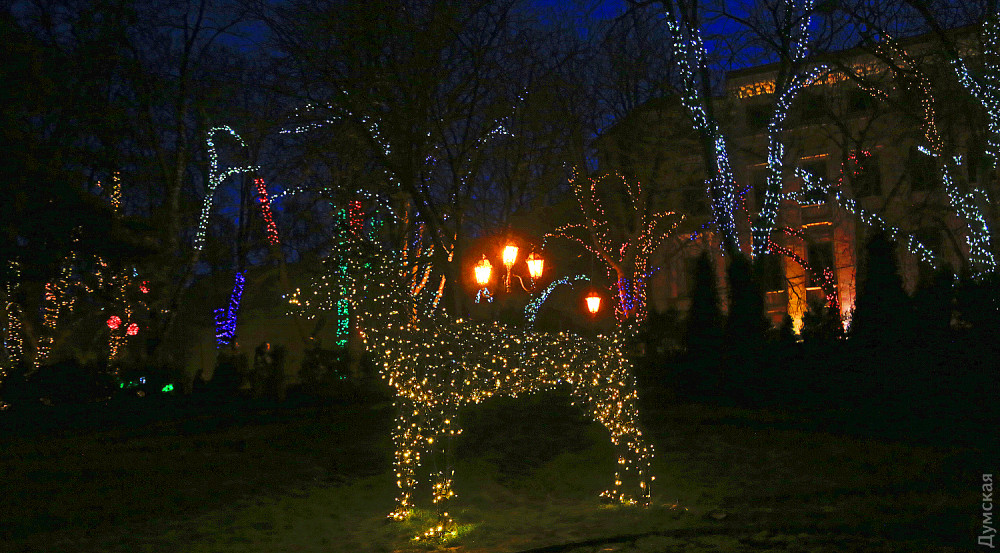 В преддверии Нового года Приморский бульвар нарядился в праздничные краски. Кроме традиционных новогодних гирлянд и елки на Думской площади, в Стамбульском парке открылся светящийся зверинец.