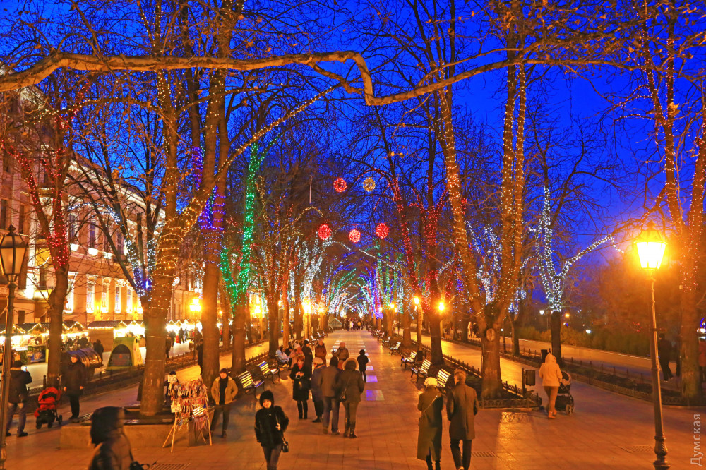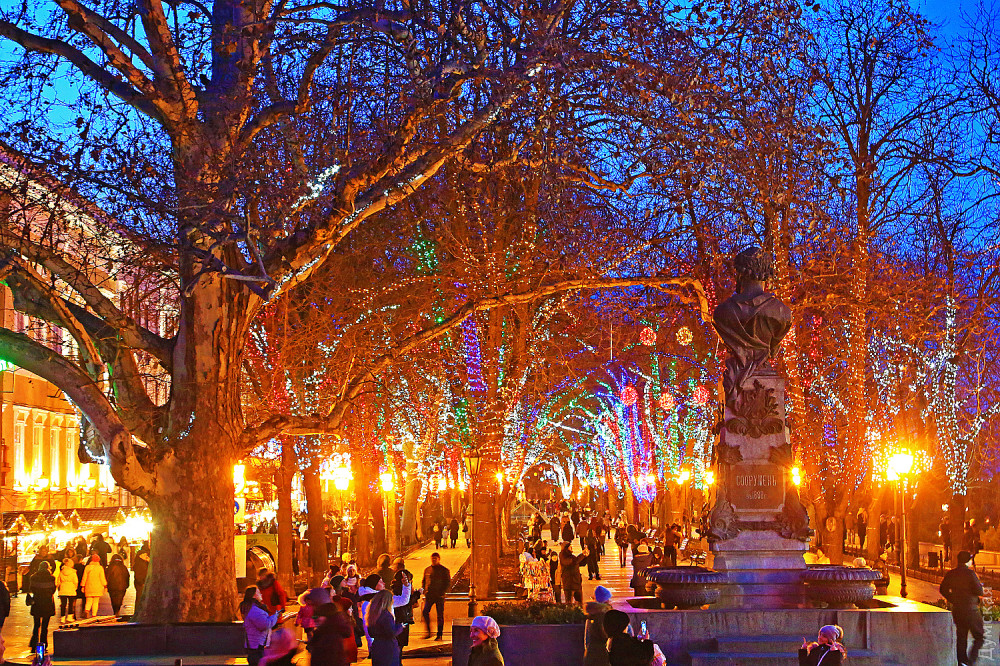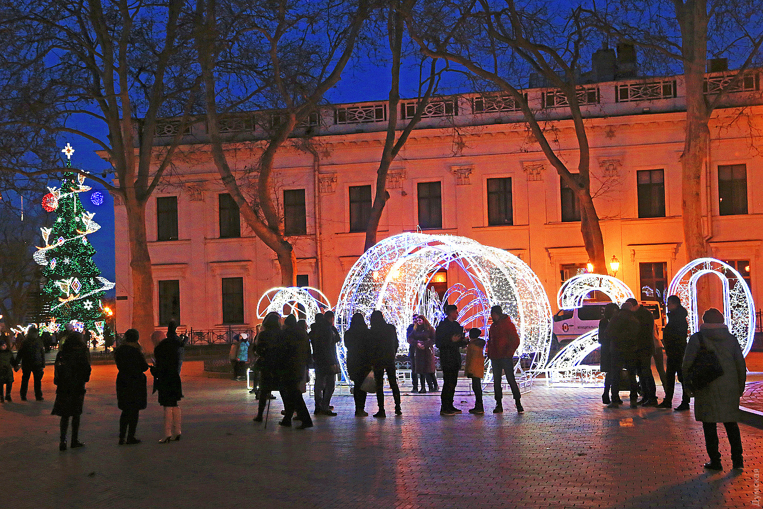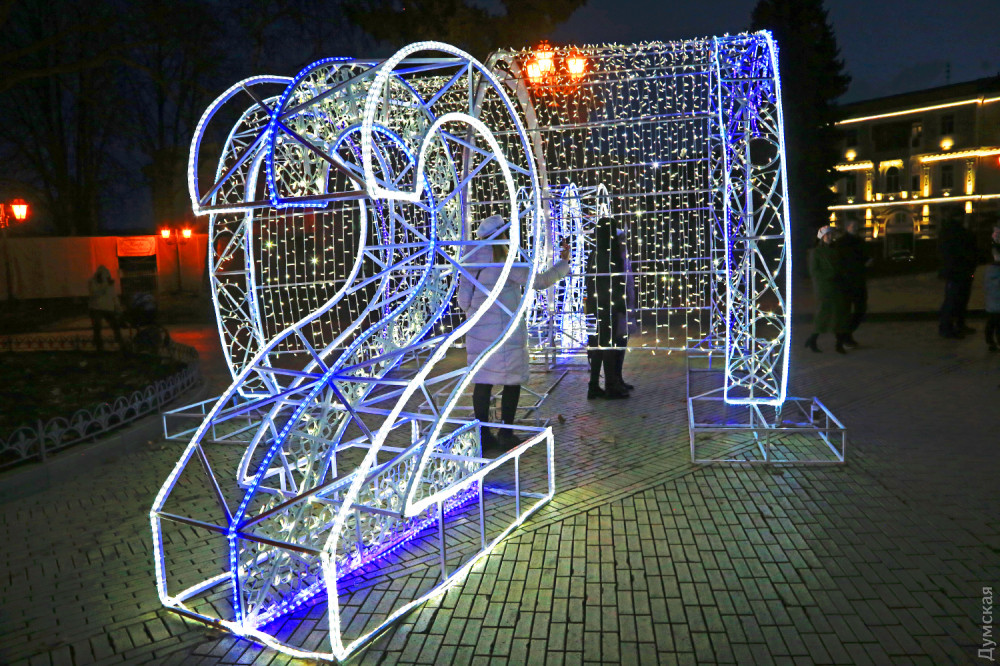 В преддверии Нового года Приморский бульвар нарядился в праздничные краски. Кроме традиционных новогодних гирлянд и елки на Думской площади, в Стамбульском парке открылся светящийся зверинец.