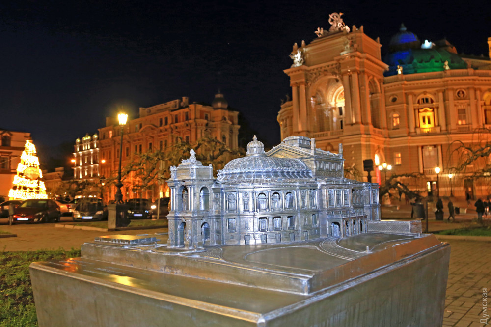 На Театральной площади также есть новинка - бронзовая копия Оперного театра. А на другой стороне Ришельевской установили праздничное дерево.