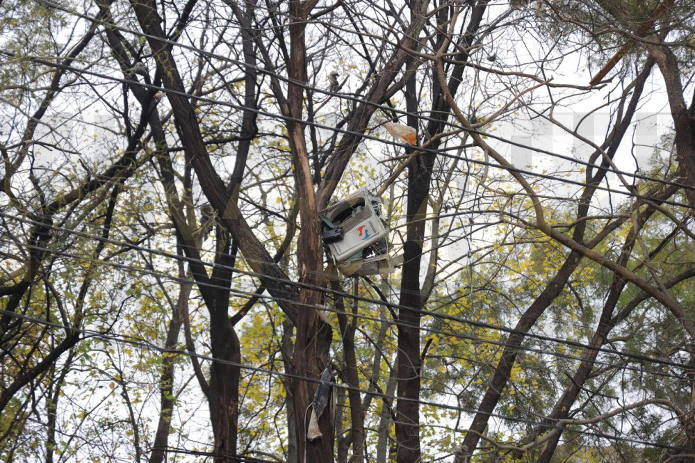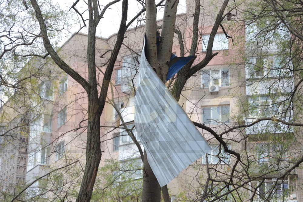 Як передає кореспондент «Думської», вибух на маленькому базарчику був такої сили, що закинув кондиціонер на дерево.