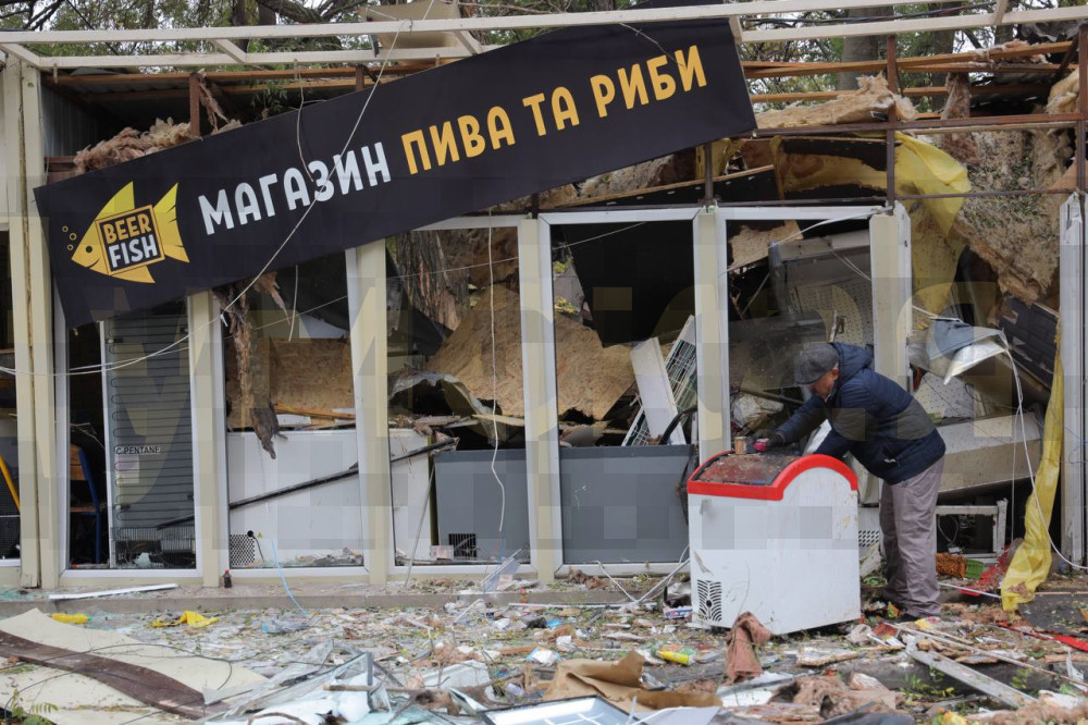 Загалом на ринку зруйновано два павільйони, ще 10 - пошкоджено. Зараз там розбирають завали, орендарі виносять уцілілий товар. Цікаво, що продуктовий ринок буквально за рогом працює. Там також постраждало кілька павільйонів, здебільшого обвалилася стеля і вилетіло скло.