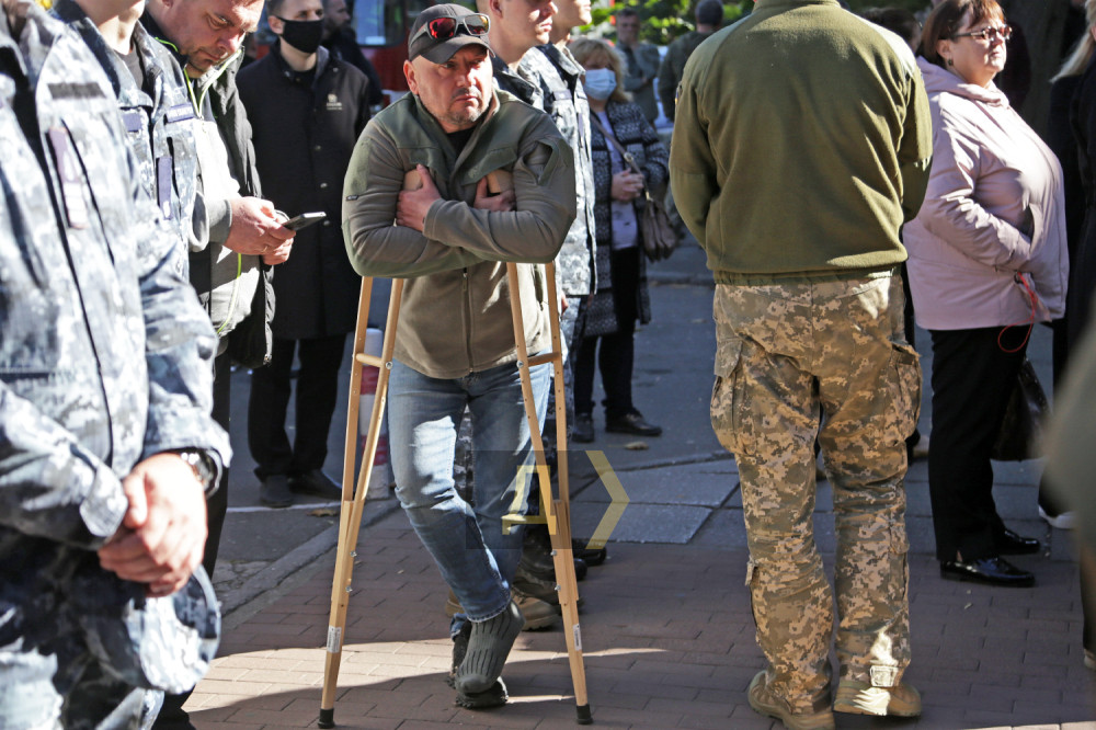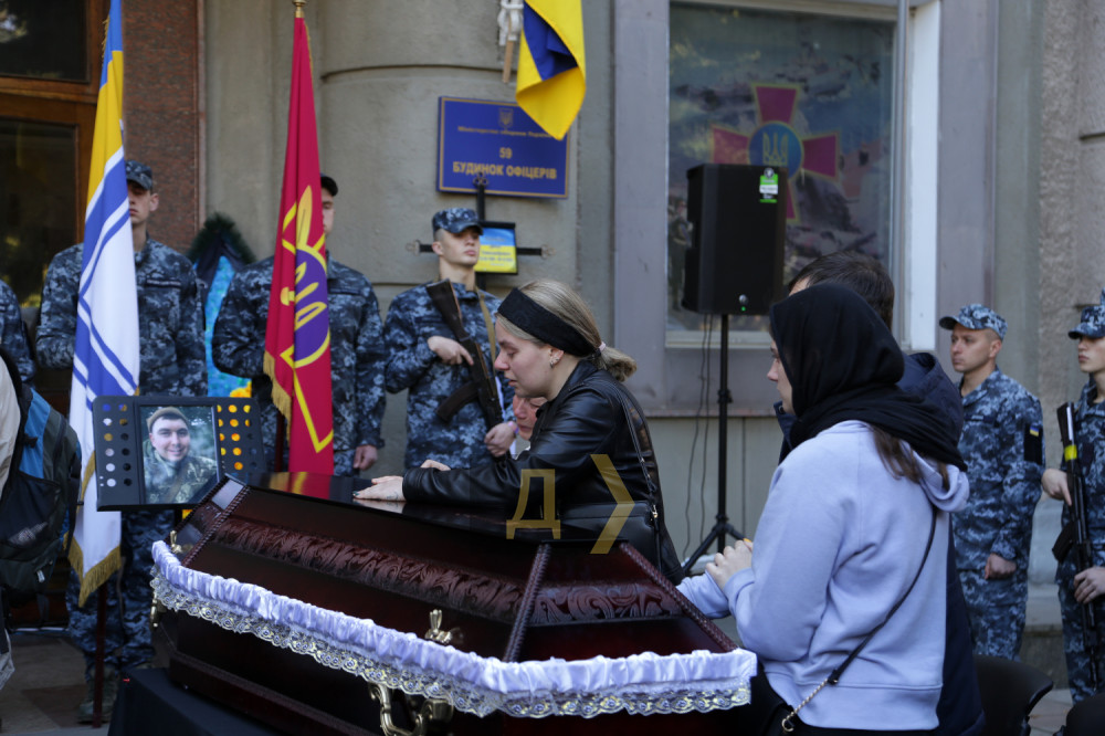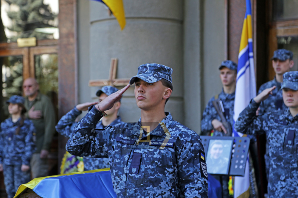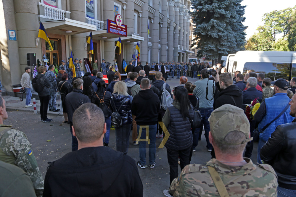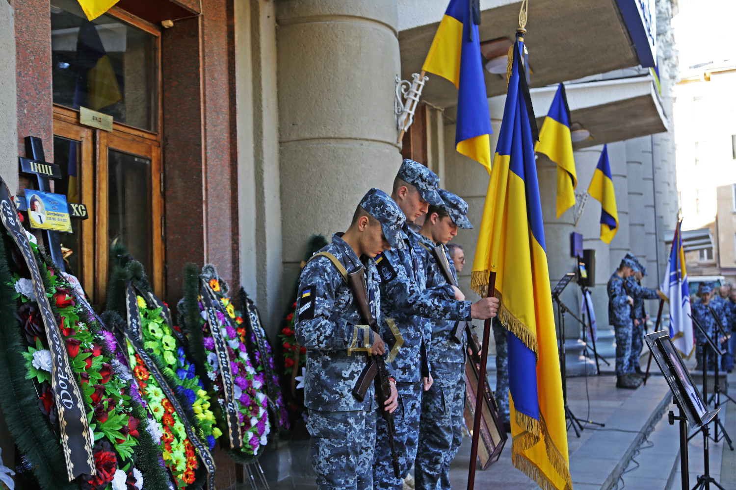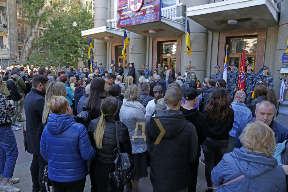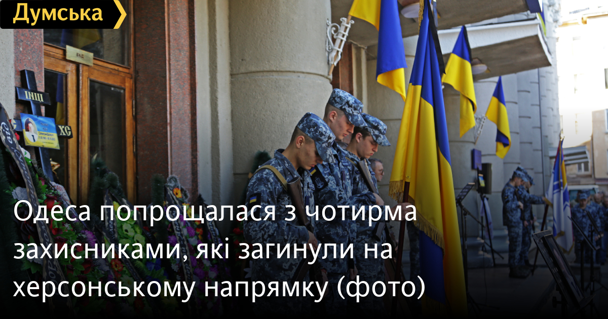 Прощання з чотирма українськими воїнами, які загинули в боях на херсонському напрямку, відбулося біля одеського Будинку офіцерів.