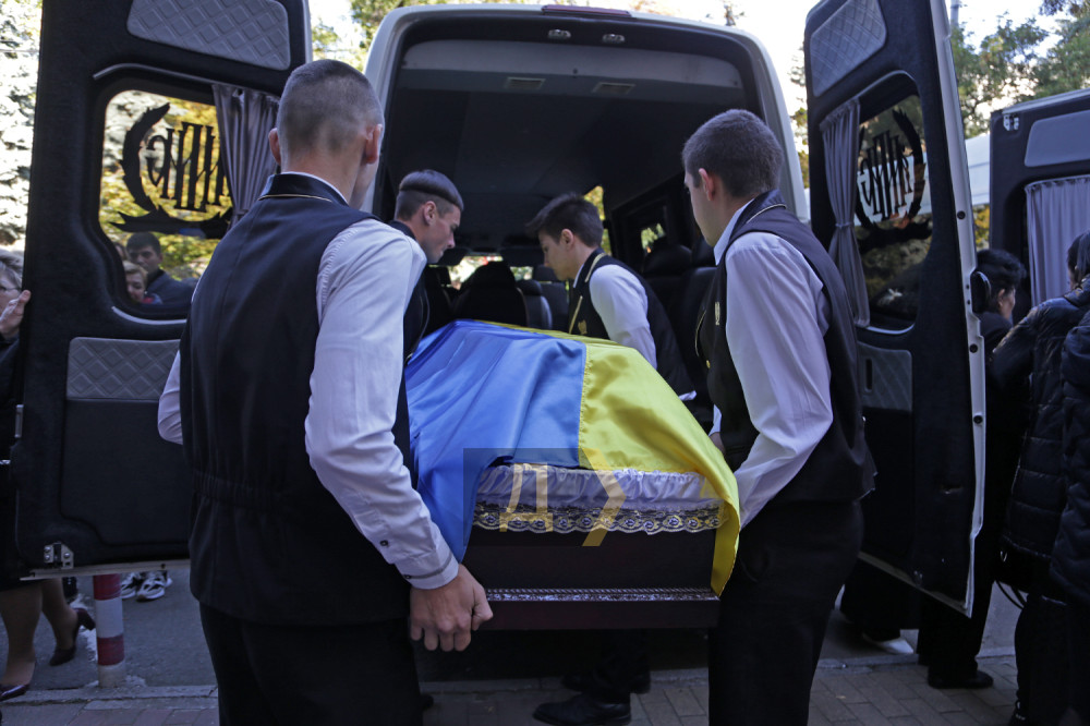 Після прощання труни накрили українськими прапорами і відправили в останню путь до місць поховання.