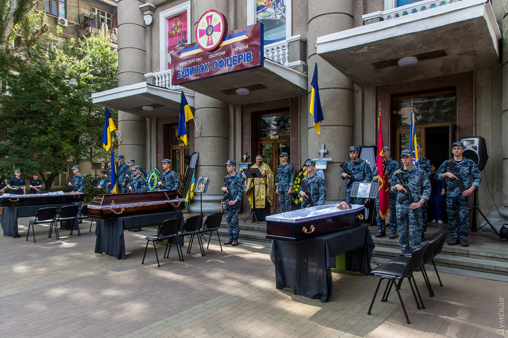 Прощання з полеглими захисниками України відбулося біля одеського Будинку офіцерів на Пироговській вулиці.