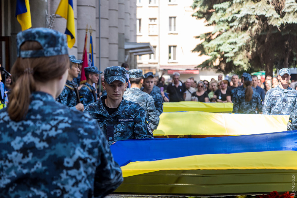 Як передає кореспондент «Думської», в останню путь трьох загиблих прийшли проводити сотні одеситів.