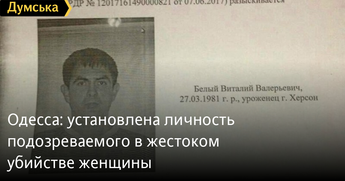 Полиция разыскивает подозреваемого в убийстве женщины, тело которой было обнаружено в ночь на 7 июня возле дома на улице Главной (поселок Большевик). Как сообщает Суворовский отдел полиции, подозреваемый — Белый Виталий Валерьевич, 1981 года рождения, уроженец Херсона. Ему инкриминируют совершение преступления, предусмотренного ч.1 ст. 115 УК Украины (умышленное убийство). Всех, кому что-либо известно о предполагаемом преступнике, просят звонить по телефонам: «102», (048) 779-42-88 и (048) 755-76-83. СМЕРТЬ РОССИЙСКИМ ОККУПАНТАМ! Заметили ошибку? Выделяйте слова с ошибкой и нажимайте control-enter |