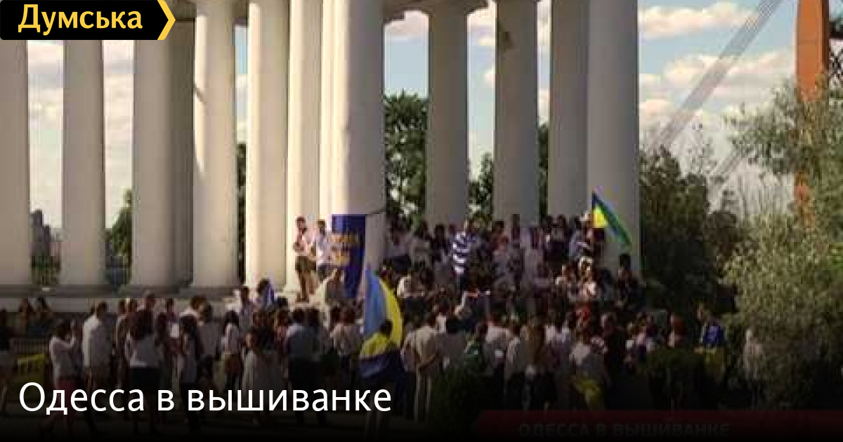 Тысячи одесситов в вышивках вышли на центральные улицы города. Вышыванковый фестиваль, — закончился грандиозным маршем, а на Потёмкинской лестнице развернули огромный жёлто-голубой стяг.