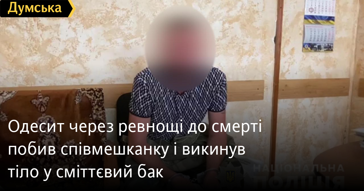 Одесит через ревнощі до смерті побив співмешканку і викинув тіло у сміттєвий бак44-річного жителя Суворівського району, який до смерті побив свою співмешканку та викинув тіло у сміттєвий бак, затримали правоохоронці. Як повідомили у пресслужбі обласної поліції, інформація про те, що на сміттєзвалищі у Дальницькому кар'єрі виявлено оголене тіло жінки, надійшла правоохоронцям уранці 24 серпня. Вже наступного дня оперативники з'ясували, що одесит на ґрунті ревнощів влаштував сварку зі своєю 47-річною співмешканкою. Конфлікт переріс у бійку і чоловік жорстоко побив жінку. Вранці він виявив, що вона не подає ознак життя, тому, щоб приховати сліди злочину, поклав тіло в сумку і виніс у бак для сміття. Звідти покійницю згодом відвіз сміттєвоз. Зловмисника затримали у нього вдома. Заперечувати свою провину в скоєному він не став. Фігуранту повідомили про підозру в умисному вбивстві, передбаченому ч.1 ст.115 Кримінального кодексу України. Суд обрав йому запобіжний захід у вигляді тримання під вартою. Правопорушнику загрожує від семи до 15 років позбавлення волі. Помітили помилку? Виділяйте слова з помилкою та натискайте control-enter Новини по цій темі: 29 липня 2025: В Усатово Одеської області сталася перестрілка: поліція працює на місці (відео, оновлено) 28 липня 2025: П'яний на "Ягуарі" або гіпертонік? Звільнений топ-посадовець одеської поліції хоче повернутися на службу 19 червня 2025: Дівчинку, яку шукали сотні одеситів, знайшли вбитою: поліція працює з чоловіком, ймовірно причетним до загибелі 27 травня 2025: Увели гектар в університету: на Одещині засудили земельних аферистів, але без посадки і Хвоста |