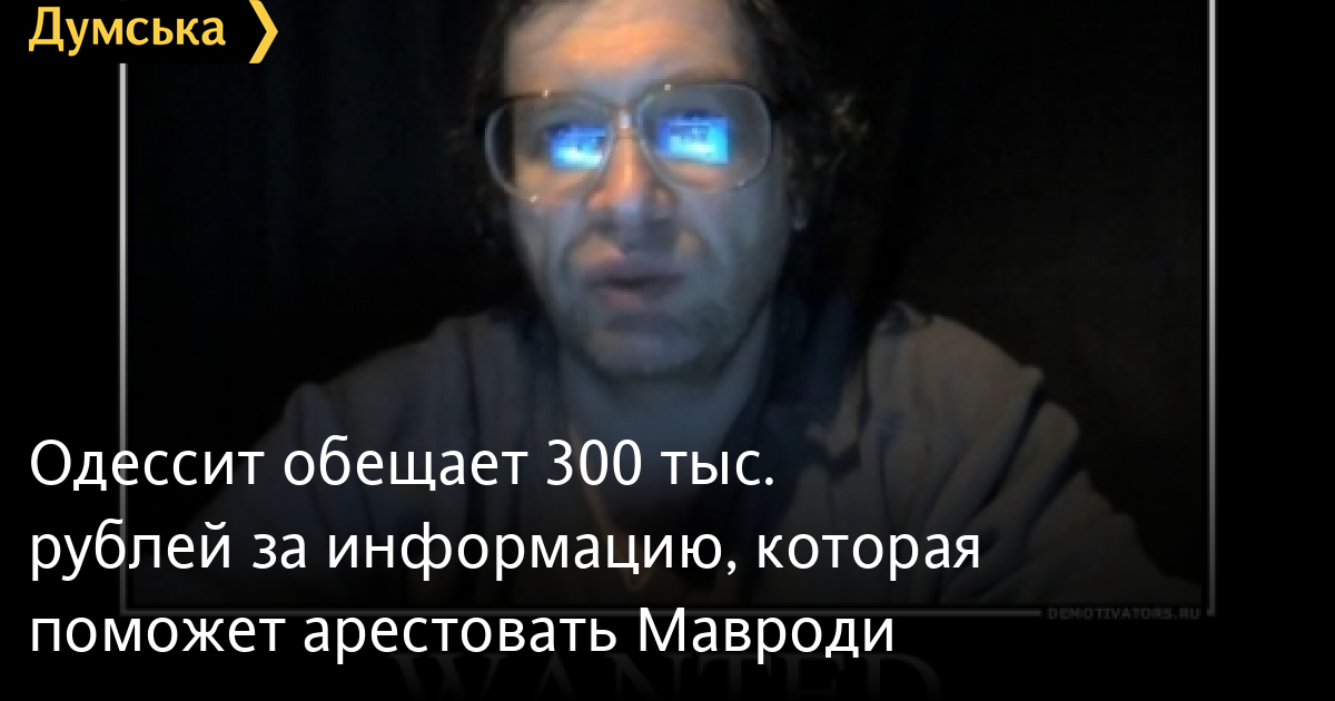 «Интернет партия Украины готова заплатить 300 000 рублей тому, кто предоставит информацию, которая поможет арестовать Сергея Мавроди до 9 апреля. Анонимность гарантируется», — заявил лидер Интернет партии Украины одессит Дмитрий Голубов в эфире телеканала Россия-1.