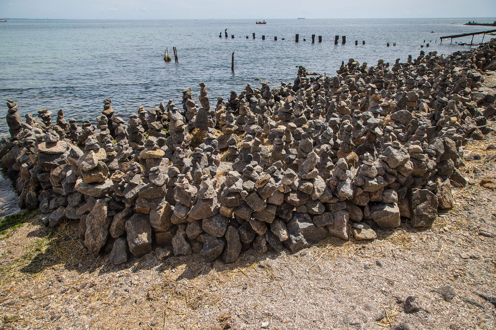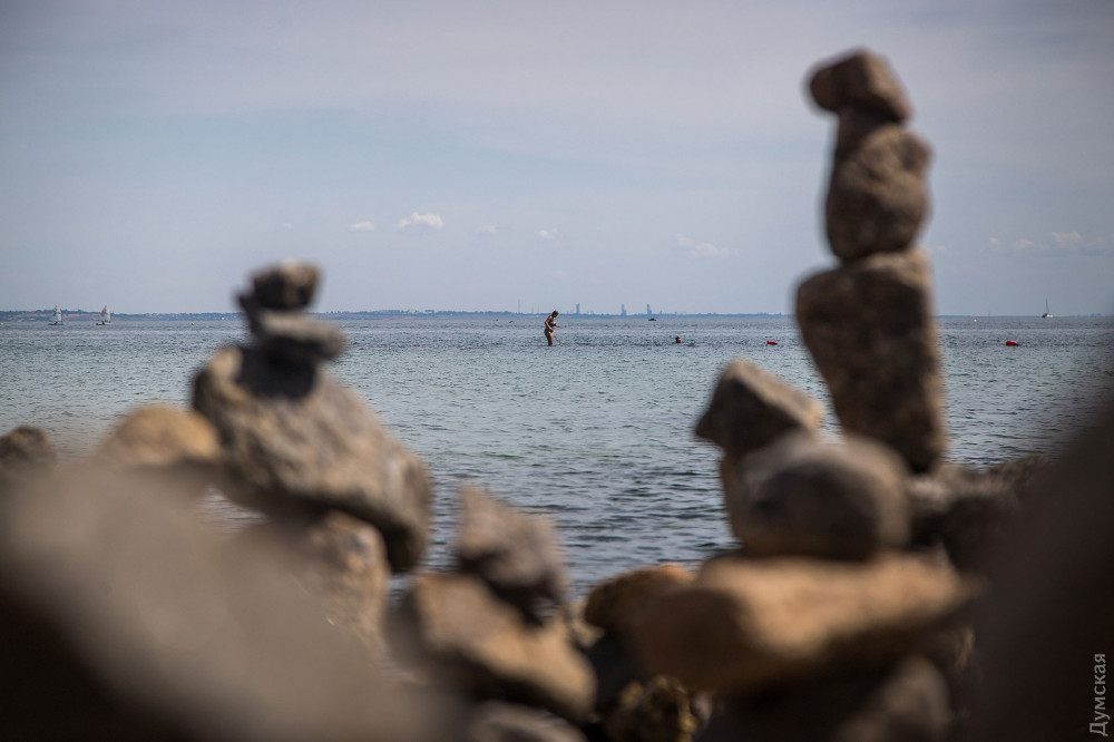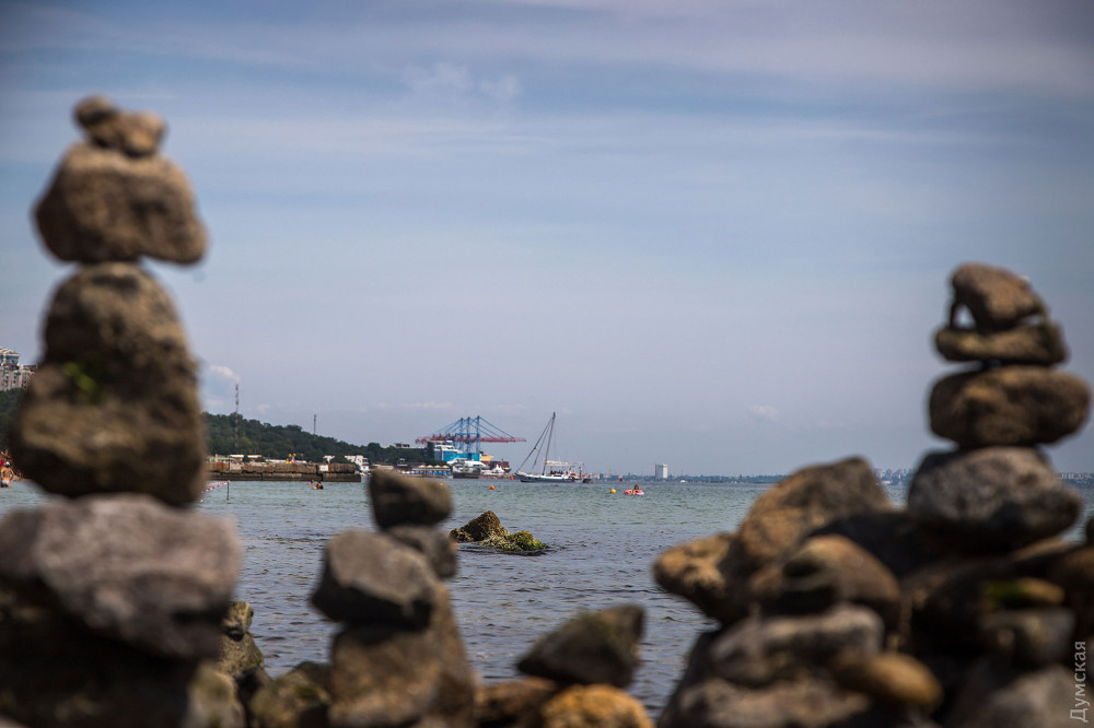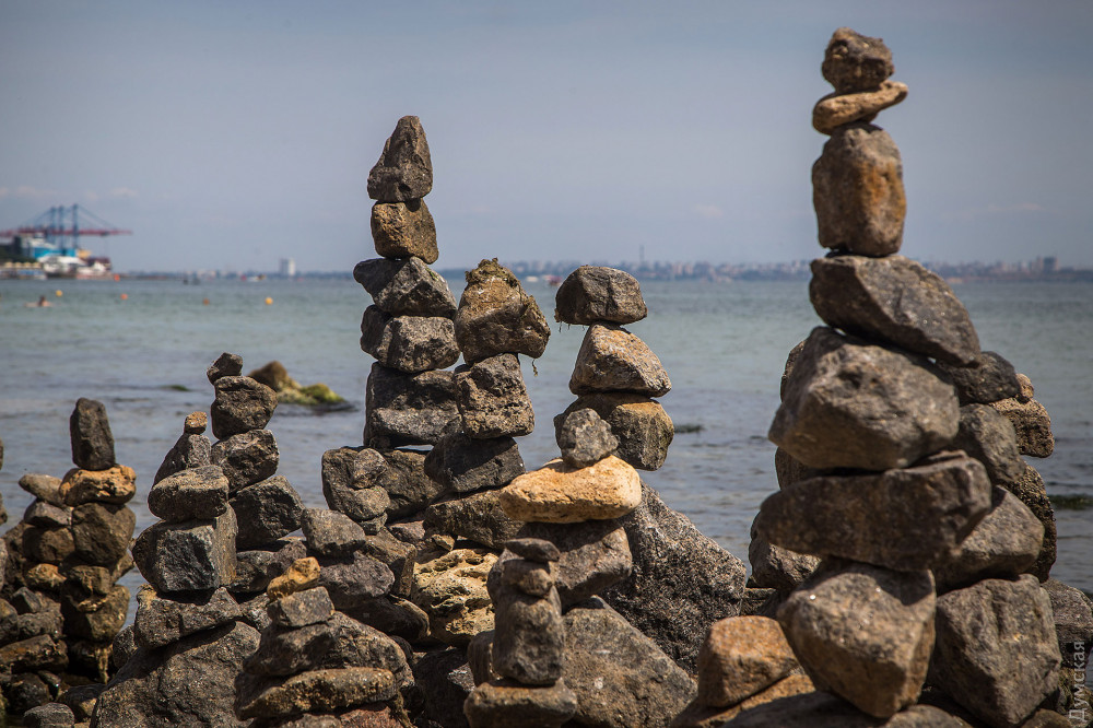 Импровизированный сад камней появился на одесском пляже, известном как Собачий, недалеко от выброшенного на берег сухогруза Delfi.