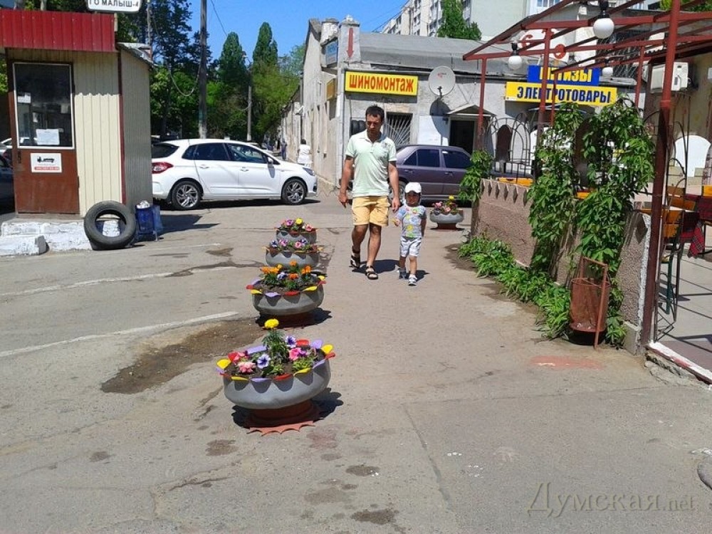Отличная работа власти по подмене понятий. Все комменты выше — положительные, это страшно. Страшно то, что общество не спрашивает у всласти «ах е6 же ж твою налево, где наши налоги? где красивые клумбы и фонтаны? за что мы ползарплаты отдаем?», а говорят «вау, круто, клумбы из покрышек, а всем остальным надо пример с него брать! ". Чувак этот, безусловно, молодец. Он в сто раз больше молодец, чем все остальные, потому что он свои хорошие намерения реализовывает, а не мечтает на печке. Следующим этапом должно стать появление вкуса у этого человека. Поймите, не должны покрышки быть украшением города, они должны лежать на свалке или идти на переработку. Не должны быть детские площадки из покрышек, для детей надо делать площадки из специальных материалов. Дети, выросшие на свалке ( колесных площадках) — разве это нормально? Что дальше? Мощение дорог крышечками от пива?  Сидения в троллейбусе набитые шелухой от семечек?  Люди, пора вспоминать, что тотального дефицита сейчас нет, поэтому давайте лучше создавать спрос на КАЧЕСТВЕННУЮ городскую среду: на нормальные детские и спортивные площадки, на нормальные лавочки со спинками, на фонари с теплым желтым светом, на тротуарную плитку. Пока мы не создадим спрос на это, до тех пор нас и будут кормить гнилой кашей  с клумбами из покрышек, турниками из неликвидных труб, скамеек из двух досок и улицами без тротуаров. Одесситы заслуживают большего, я уверен!