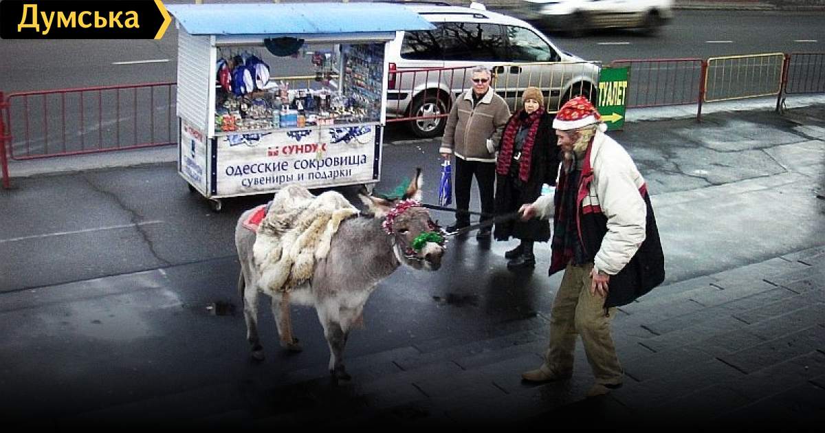 Одессит в честь наступающего Нового года покорял Потемкинскую лестницу верхом на ослеОдессит по имени дядя Коля на днях устроил необычное новогоднее шоу на Потемкинской лестнице. Он надел шапку Санта Клауса и решил подняться к Дюку верхом на осле, которого тоже соответствующим образом нарядил. Однако, хотя чудак отчаянно лупил животное ногами по бокам, он так и не смог заставить его подниматься по ступенькам, пишет «Рупор». Спешившись, ему все-таки удалось, используя метод «кнута и пряника», затянуть свое «транспортное средство» на два пролета вверх. СМЕРТЬ РОСІЙСЬКИМ ОКУПАНТАМ! Помітили помилку? Виділяйте слова з помилкою та натискайте control-enter Новини по цій темі: 1 квітня 2021: Часть исторического центра Одессы временно перекроют для автотранспорта: Тещин мост снова станет пешеходным 28 січня 2020: Соратники Труханова построят торгово-офисный центр у подножия Потемкинской лестницы: обещают музей (фото) 19 січня 2020: Одесский фуникулер закрывают на ремонт до конца марта 2 вересня 2019: День Города: гала-концерт на Потемкинской (фото, видео) 24 серпня 2019: Вышиванковая цепь в Одессе: рекорд 2016 года пока не побит |