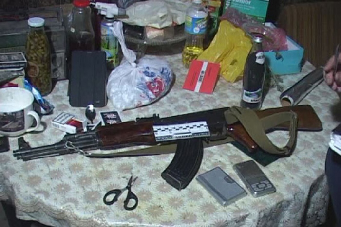 Как сообщает пресс-служба облуправления нацполиции, правоохранители совместно с общественниками осмотрели домовладение 49-летнего ранее судимого мужчины и изъяли 240 пакетов с соцветиями конопли общим весом около 500 г, пакет с килограммом марихуаны, электронные весы и автомат Калашникова с магазином.
