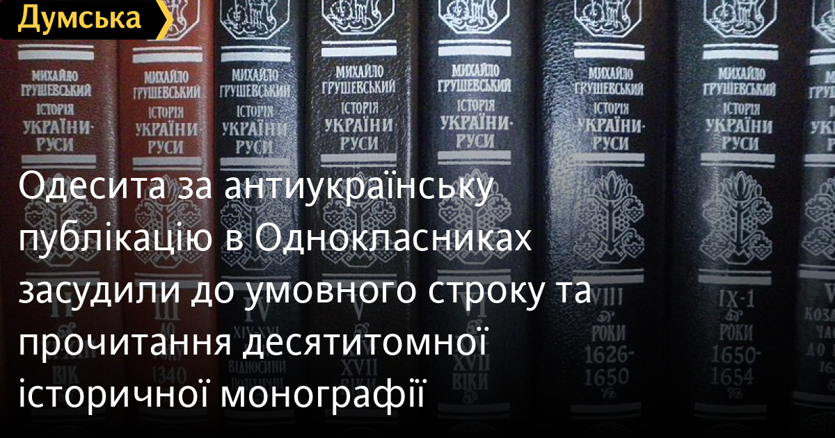 Как указывается в приговоре, судья также обязал фигуранта прочитать десятитомный исторический труд главы Украинской Центральной рады в 1917-1918 годах Михаила Грушевского «История Украины-Руси».