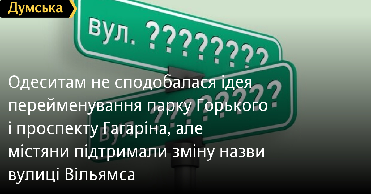 У ще одній важливій суперечці за долю назви вулиці Вільямса, яка викликала безліч дискусій, також перемогли прихильники змін. За те, щоб назвати вулицю на честь Євгена Чикаленка, висловилися 690 одеситів, проти 561, а загалом голосував 1251 городянин.