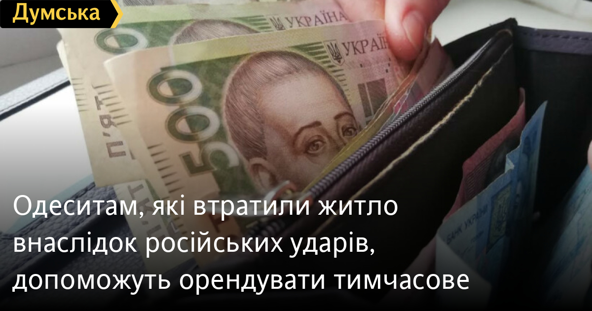 Адресну допомогу на тимчасове проживання (тобто оренду квартир) має намір надавати одеська влада жителям міста, чиє житло постраждало або було знищене внаслідок ракетних і дронових ударів нацистської росії.
