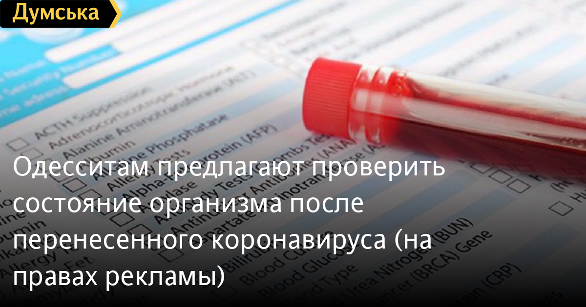 Одесситам предлагают проверить состояние организма после перенесенного коронавируса (на правах рекламы)Когда человек заболевает коронавирусом, страдает не только дыхательная система, но и общий иммунитет, сердечно-сосудистая система, печень, почки и другие органы и системы организма. Чтобы патологические осложнения заболевания COVID-19, вызванного коронавирусом SARS-CoV-2, не перешли в хроническую форму, необходимо как можно скорее после выздоровления заняться восстановлением организма. А чтобы восстановление было максимально эффективным, рекомендуется пройти определенные лабораторные исследования, позволяющие адекватно оценить ущерб, нанесенный организму болезнью. Специалисты лаборатории «Медлаб» составили перечень исследований, которые помогут оценить состояние организма после перенесенного COVID-19. Общий анализ крови с лейкоцитарной формулой. Простым, но крайне важным исследованием для людей, переболевших COVID-19, станет общий анализ крови с лейкоцитарной формулой. Лейкоцитами называются клетки иммунной системы, белые кровяные тельца. Всего их существует пять видов, а о состоянии организма после перенесенной инфекции расскажут в первую очередь лимфоциты и нейтрофилы. Кроме того, важные маркеры клинического анализа крови – это количества эритроцитов и гемоглобина, дефицит которых укажет на анемию. Уровень феритина и D-димера. Также настоятельно рекомендуется отслеживать уровень ферритина (белка, транспортирующего железо, а значит и кислород) и D-димера (белка, уровень которого сигнализирует о процессах тромбообразования). Кислородное голодание и тромботические осложнения – одни из самых опасных последствий COVID-19. Не принять вовремя соответствующие меры – значит попасть в группу риска по серьезным отдаленным осложнениям коронавирусной инфекции, в том числе инсульту. Печеночные пробы. Не лишними будут и «печеночные пробы» – функциональные пробы печени, по которым можно понять, насколько она пострадала от медикаментозной терапии в процессе болезни. Функция почек. Кроме того, необходимо проверить, не пострадала ли функция почек – для этого сдается общий анализ мочи, а также оцениваются уровни креатинина и мочевины в крови. «После окончания «острого» периода заболевания ни в коем случае нельзя заниматься самолечением. Даже при нормальной температуре тела организм человека, переболевшего коронавирусной инфекцией, максимально уязвим. Многие осложнения протекают бессимптомно и поначалу могут никак не ощущаться. Поэтому, если номинально выздоровевший человек резко возвращается к активной жизни (изнуряющие нагрузки, вредные привычки и т. д.) и/или начинает прием каких-либо препаратов без назначения врача, это может повлечь за собой крайне опасные последствия. Помните, что чем раньше ваш врач получит полную клиническую картину состояния вашего организма после коронавирусной инфекции – тем быстрее начнется полноценная восстановительная терапия. А это позволит по максимуму избежать разрушительных последствий COVID-19 и в короткие сроки вернуться к привычному образу жизни», — отметили в «Медлаб». Все перечисленные исследования выполняются во всеукраинской сети лабораторий «МедЛаб» в Одессе: ул. Успенская, 57; ул. Ген. Бочарова, 47; ул. Софиевская, 2-Б. СМЕРТЬ РОССИЙСКИМ ОККУПАНТАМ! Заметили ошибку? Выделяйте слова с ош