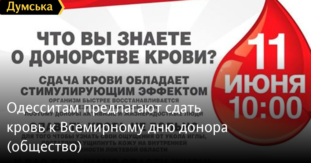 11 июня по инициативе Блока Петра Порошенко «Солидарность» на территории Одесского областного медицинского центра (ул. Судостроительная, 1) состоится акция по сдаче крови. Как сообщают организаторы, мероприятие приурочено к Всемирному дню донора крови. «Всем известно, что доноры — активные и жизнерадостные люди, а лица, постоянно сдающие кровь, – одни из самых здоровых людей на планете, — отмечается в анонсе. – Кроме того, каждый донор совершенно бесплатно получит анализ крови на такие заболевания как ВИЧ, гепатит, сифилис и другие». Начало – в 10:00. СМЕРТЬ РОССИЙСКИМ ОККУПАНТАМ! Заметили ошибку? Выделяйте слова с ошибкой и нажимайте control-enter |