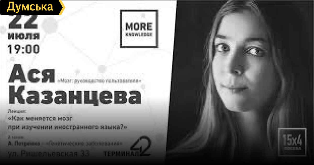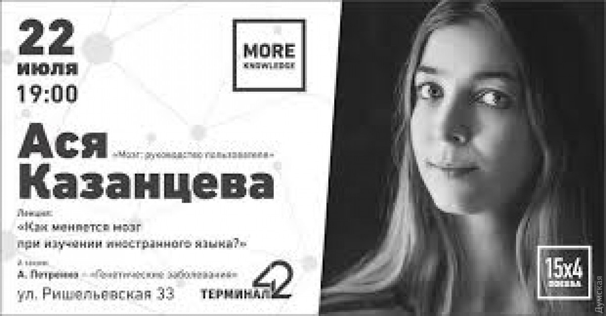 22 июля в Одессе состоится бесплатная лекция научного журналиста, лауреата премии «Просветитель», автора книг-бестселлеров об иррациональном человеческом поведении Аси Казанцевой. Тема лекции «Как меняется мозг при изучении иностранного языка». В рамках нового формата часовых лекций More Knowledge от лектория 15x4 Одесса Ася расскажет об особенностях работы мозга во время изучения родного и иностранных языков, разнице между этими процессами и оптимальном возрасте для освоения языков. Ася Казанцева в настоящий момент работает над магистерской диссертацией в рамках программы «Когнитивные науки и технологии» НИУ ВШЭ. Регулярно приезжает в Украину с научно-популярными лекциями. В 2016 году уже выступала в Одессе, Львове, Харькове и Киеве. В мероприятии также примет участие эмбриолог Александр Петренко с короткой лекцией о генетических заболеваниях. Отметим, лекции проходят в рамках международного тура «Мозг: руководство пользователя». Начало в 19:00 по адресу ул. Ришельевская, 33 «Терминал 42». СМЕРТЬ РОСІЙСЬКИМ ОКУПАНТАМ! Помітили помилку? Виділяйте слова з помилкою та натискайте control-enter |