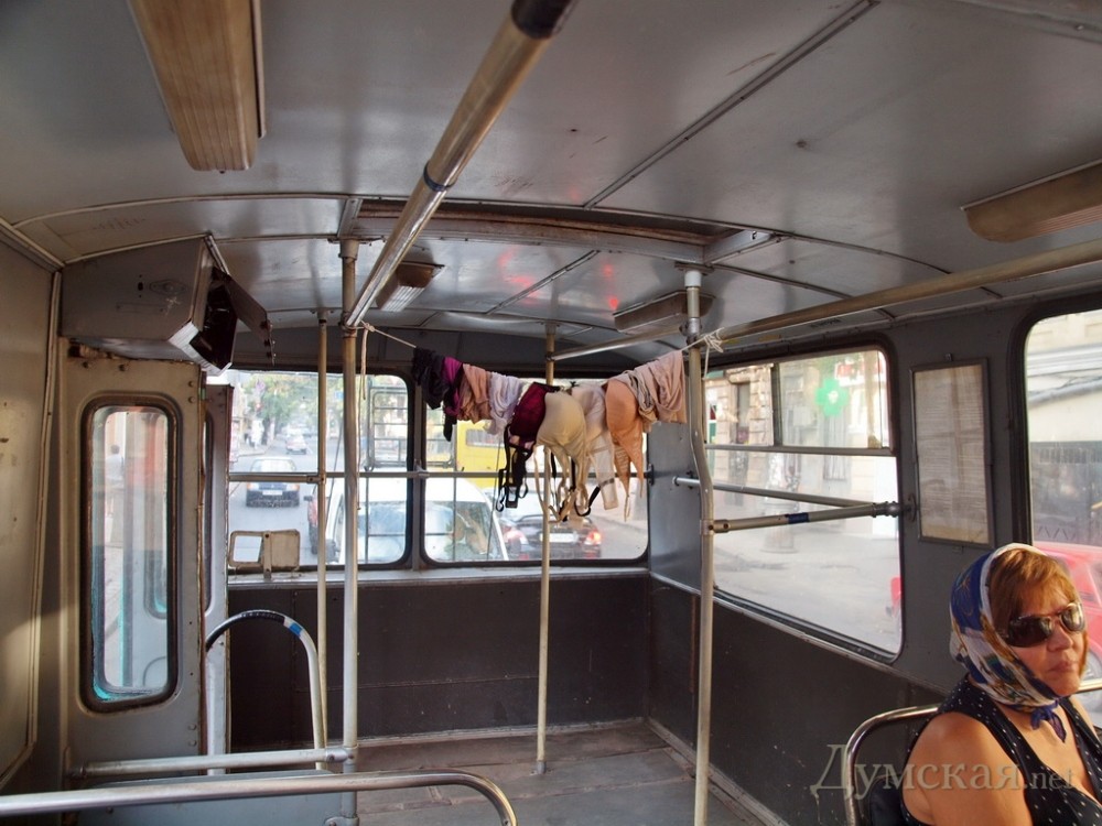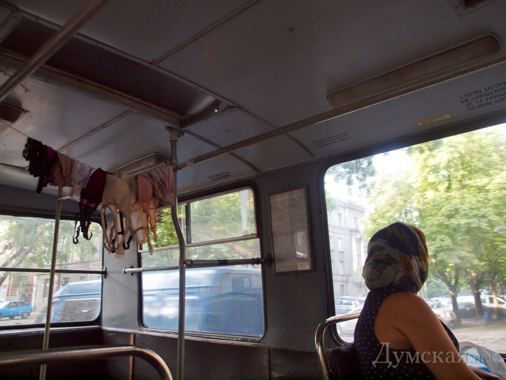 Корреспондент «Думской» стал невольным свидетелем того, как не совсем адекватная пассажирка устроила постирушки в троллейбусе 5-го маршрута, развесив свое нижнее белье сушиться прямо в салоне. Причем так, что все, проходящие с задней площадки троллейбуса вперед, обязательно цеплялись головами за трусы и лифчики. Сама пассажирка при виде камеры старательно прятала лицо и скрывалась за темными очками, но не всегда удачно. Рядом с ней на сиденье лежал внушительный пластиковый таз. Общаться она наотрез отказалась. Зато водитель троллейбуса поведала нам весьма странную историю: «Она всегда рано утром едет из Аркадии и устраивает стирку, а потом сушит белье в салоне. Обряд у нее такой, что ли? Или просто больная на голову? Я когда вижу, что она идет в троллейбус, стараюсь закрыть двери и уехать. Но не всегда успеваю. А если захлопну двери перед ее носом — так потом она звонит в депо и жалуется, что, мол, в троллейбус не пускают». СМЕРТЬ РОСІЙСЬКИМ ОКУПАНТАМ! Помітили помилку? Виділяйте слова з помилкою та натискайте control-enter |