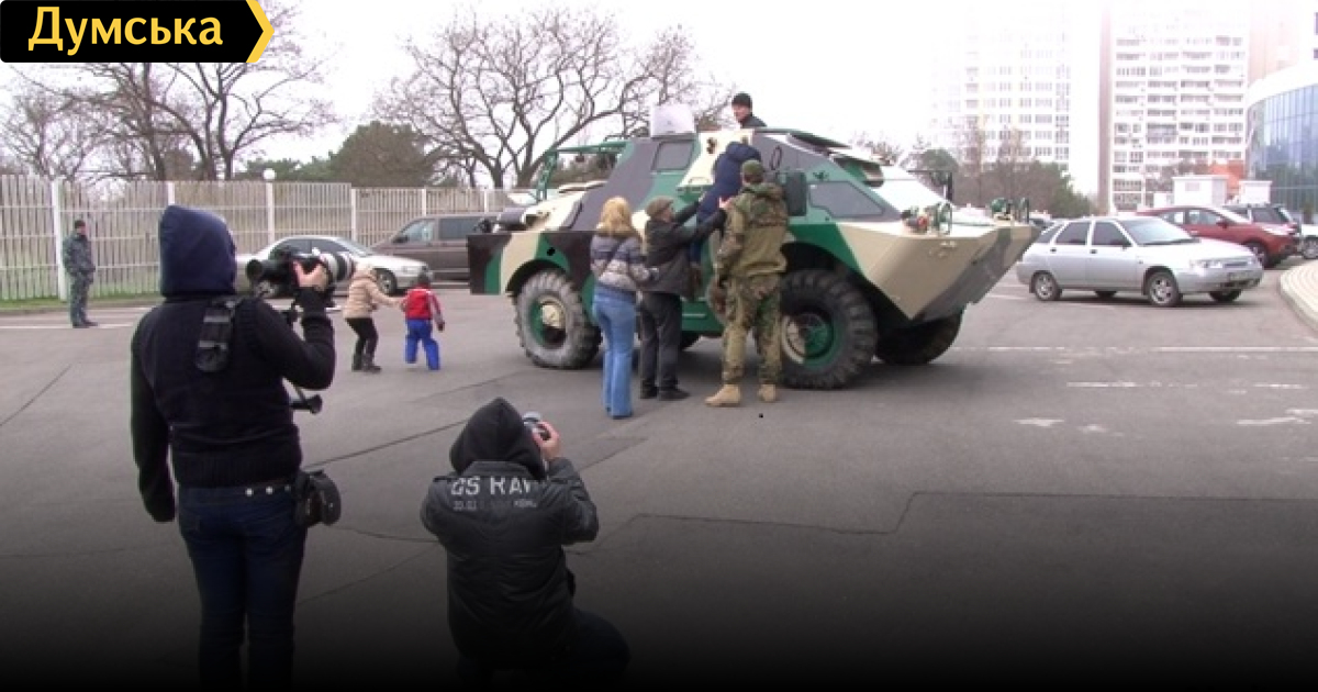 Одесситка приехала поздравлять мужа на бронетранспортере