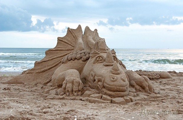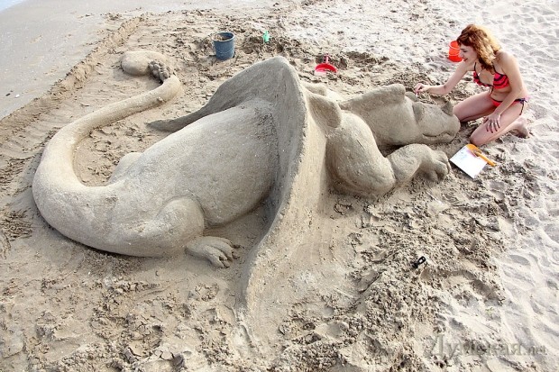 Впрочем, есть люди, которые посвящают фигурам из самого недолговечного материала всю свою жизнь. Более того, это занятие давно уже получило признание как отдельный вид изобразительного искусства. Международные конкурсы и фестивали песочной скульптуры привлекают в курортные города тысячи туристов. Не отстают от мировых тенденций и одесситы. «Думская» познакомилась с землячкой Ириной Загайчук, которая вот уже несколько лет украшает городские пляжи необычными изваяниями. Наш корреспондент даже внес скромную лепту в создание самого большого дракона, когда-либо загоравшего на одесском берегу.