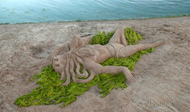 Увы, еще ни одна песочная фигура, созданная Ириной, не дожила до вечера следующего дня. Причем морские волны или ветер редко когда бывают в этом виноваты. Чаще всего скульптуру разрушают люди. Впрочем, Ирина Загайчук не огорчается — она считает, что ее творения на каждом отрезке своего существования должны служить людям: