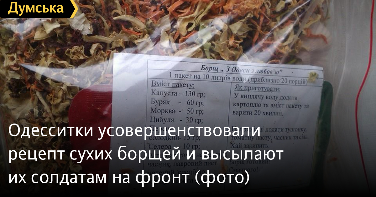 Группа неравнодушных одесситок, помогающих бойцам АТО и Военно-морским силам, освоила кулинарную новинку, придуманную львовскими волонтерами — сухие борщи.