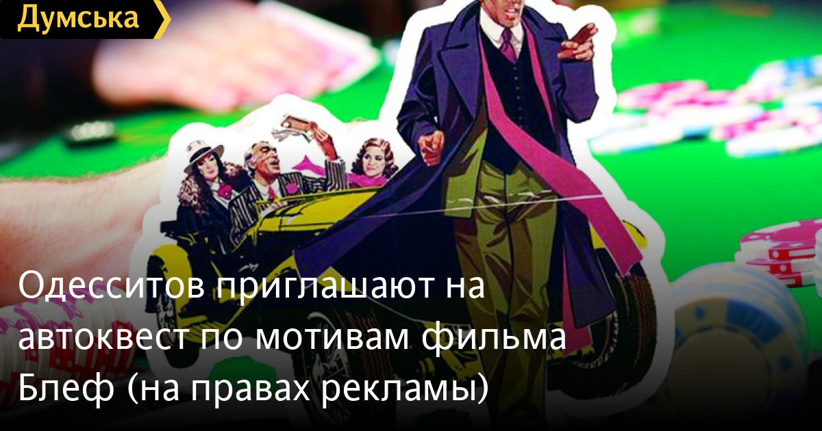 Одесситов приглашают на автоквест по мотивам фильма «Блеф» (на правах рекламы)В субботу, 19 октября, в Одессе пройдет автоквест на тему фильма с Адриано Челентано «Блеф». Как сообщают организаторы, сбор участников будет проходить на Куликовом поле в 19:30. Зарегистрироваться на игру можно здесь. Для тех, кто играет впервые, здесь. По всем вопросам также можно звонить по телефону 0932391235. Кроме автомобиля, команды должны взять с собой телефон с интернетом, карту Одессы, фонарики, письменные принадлежности и хорошее настроение. Напомним, суть подобных игр заключается в последовательном выполнении различных заданий. Цель задания — найти код, который позволит вашей команде перейти на следующий уровень. Победителем становится тот, кто первым выполнит все задания. СМЕРТЬ РОССИЙСКИМ ОККУПАНТАМ! Заметили ошибку? Выделяйте слова с ошибкой и нажимайте control-enter |