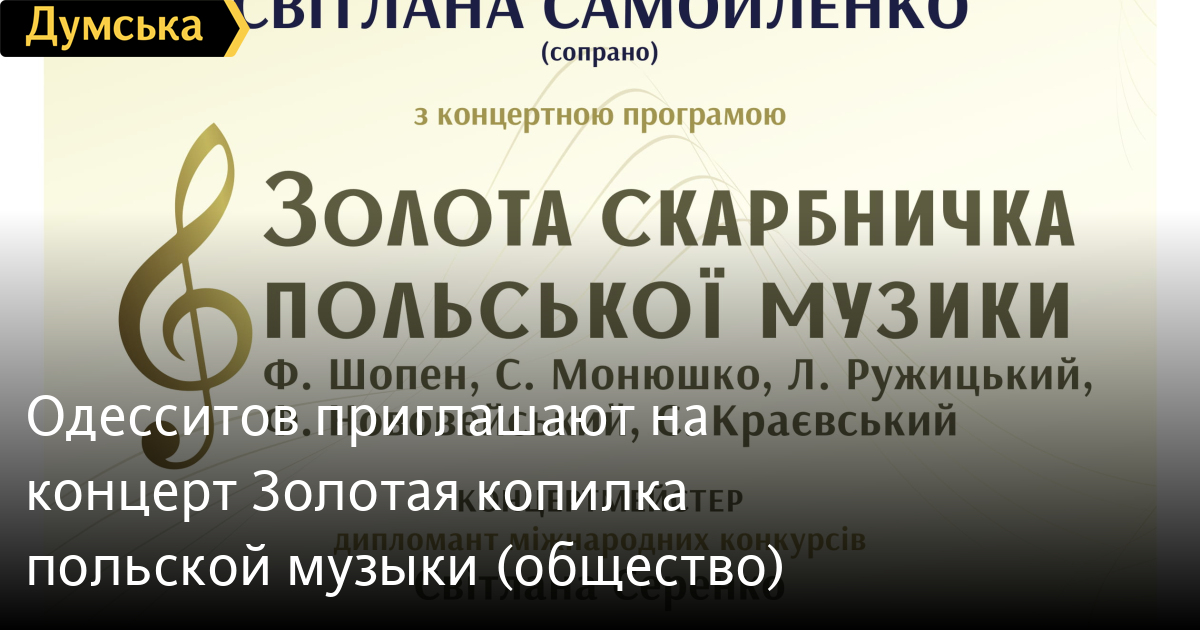 В Одессе готовят цикл акций, мероприятий и концертов, посвященных 100-летию со Дня независимости Республики Польша. Первый концерт «Золотая копилка польской музыки» состоится 25 марта 2018 в 15:00 — в золотом зале Литературного музея с программой выступит заслуженный деятель культуры Польши Светлана Самойленко. В концерте прозвучат произведения Шопена, Монюшко, Ружицкого, Нововейского, Краевского. Организаторы отмечают, что вокал Светланы Самойленко — международного уровня. Самойленко является солисткой академического ансамбля украинской музыки, песни и танца «Чайка» Одесской областной филармонии, солисткой Одесского украинского музыкально-драматического театра им. В.Василько, лауреатом многочисленных международных вокальных конкурсов. В концертной программе также участвует лауреат международных конкурсов и фестивалей, участник международных музыкальных проектов виолончелист Александр Михайлов. Кроме того, в рамках программ выступит хор «Polskie kwiaty». Ведущая концертной программы — лектор-музыковед Одесской областной филармонии, заслуженный работник культуры Украины Анна Розен. Вход на мероприятие свободный. СМЕРТЬ РОССИЙСКИМ ОККУПАНТАМ! Заметили ошибку? Выделяйте слова с ошибкой и нажимайте control-enter |