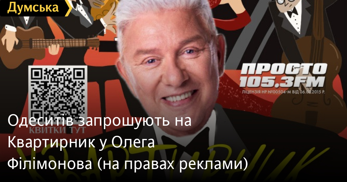 Одеситів запрошують на «Квартирник у Олега Філімонова» (на правах реклами)Концерт «Квартирник у Олега Філімонова» відбудеться 27 лютого в одеському Театрі музкомедії ім. М. Водяного. Улюблений гуморист та актор тисяч українців представить унікальну програму, що приємно здивує кожного. Олег Філімонов – популярний український гуморист, шоумен, якого добре знають за грою у КВК у складі команди «Одеські джентльмени» та за участю у таких відомих телевізійних проєктах як «Джентльмен-шоу», «Камера сміху» та інших. «Зустріч з артистом гарантує всім вечір у чудовому настрої. Та ще й формат відповідний – квартирник. Дивовижний тандем гумору та музики на сцені», — обіцяють організатори. На гостей концерту чекають цікаві сюрпризи, серед яких живий оркестр, відео-подарунок від талановитого пародиста Юри Великого, виступ чемпіонів світу зі степу та тріо тенорів (майже Паваротті, начебто Каррерас та, здається, Пласідо Домінго), а також випивка та закуска для всіх від Олега Філімонова. Окрім цього, глядачі почують пісенні хіти усіх часів англійською, іспанською, французькою та одеською мовами у виконанні самого Олега Філімонова. Початок концерту о 19:00. У випадку повітряної тривоги концерт призупиниться, глядачі пройдуть до найближчого укриття. Після закінчення тривоги концерт буде продовжено (за можливості подальшого проведення). Квитки можна придбати тут. СМЕРТЬ РОСІЙСЬКИМ ОКУПАНТАМ! Помітили помилку? Виділяйте слова з помилкою та натискайте control-enter |