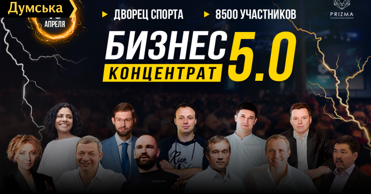 10 апреля 2020 года во Дворце спорта в Киеве пройдет форум для предпринимателей Бизнес-Концентрат 5.0. В рамках мероприятия запланирована насыщенная девятичасовая программа выступлений от топовых бизнесменов СНГ - практические кейсы, истории успеха и неудач, тренды и тенденции в мире бизнеса, будущие перспективные ниши и просто большая порция вдохновения и мотивации от спикеров форума. «На каждом событии, которое мы организовываем, мы ставим перед собой две задачи. Во-первых, подобрать спикеров, которые могут дать и мощную порцию мотивации, и практические знания в бизнесе. А во-вторых, дать возможность гостям найти единомышленников, возможных партнеров для бизнеса, либо просто создать вокруг себя новое созидающее окружение. Поэтому наша команда уделяет большое внимание контенту на сцене и нетворкингу в зале», — прокомментировал основатель Prizmа Артем Майдан. На форуме выступят: Василий Хмельницкий – известный украинский инвестор, основатель холдинговой компании UFuture, в которую входят социальные и бизнес-проекты общей стоимостью $1 млрд. Основатель UNIT.City. Входит в ТОП-50 самых богатых людей Украины с состоянием $240 млн по версии Forbes. Михаил Федоров – вице-премьер-министр, Министр цифровой трансформации. Помимо политической карьеры, известный digital-специалист и основатель компании SMMSTUDIO. Руководил digital-направлением предвыборной кампании кандидата в президенты Украины Владимира Зеленского. Виктория Тигипко – основатель и управляющий партнер венчурного фонда ТА Ventures, основатель закрытого клуба частных инвесторов iClub и комьюнити для женщин-руководительниц в IT и tech-бизнесе WTECH. Президент Одесского международного кинофестиваля и председатель наблюдательного совета Украинской киноакадемии. Олег Гороховский – сооснователь monobank — первого в Украине мобильного банка, клиентами которого стали уже более 2 млн человек, и он считается самым быстрорастущим банком без отделений в мире. Оскар Хартманн – серийный предприниматель, инвестор, филантроп, спортсмен. Основатель более 10 компаний, капитализация которых превышает $5 млрд. Портфель венчурных инвестиций насчитывает 70 компаний по всему миру среди которых пять компаний достигли капитализацию более 1 млрд долларов США. Маргулан Сейсембай — казахский предприниматель, основатель компании «Сеймар» Участник списка Forbes Kazakhstan «50 самых влиятельных бизнесменов-2019». Управляющий партнер фондов «Asadel Partners» и «Asadel Venture» и благотворительных фондов Seimar Social Fund и Фонда Ниет. Александр Конотопский – основатель и CEO Ajax Systems — самой титулованной беспроводной системы безопасности в Европе. Компания продает свою продукцию в более чем 70 стран мира и оценивается в $100 млн. Константин Ефименко — предприниматель, президент фармацевтической компании «Biopharma», глава совета директоров компании по производству тормозных колодок для грузовых ЖД вагонов «Трибо». Biopharma экспортирует свою продукцию в более чем 36 стран мира и вырабатывает 20 000 000 упаковок препаратов на год. А каждый пятый грузовой ЖД вагон в мире (!) оснащен тормозными колодками «Трибо». Роман Прокофьев — сооснователь Jooble, одного из крупнейших сервисов по поиску работы в мире. Только за 2019 год Jooble воспользовалось более 500 миллионов человек. Компания работает в 71 стране мира на 25 разных языках. Роман также является активным инвестором IТ-компании, Limite