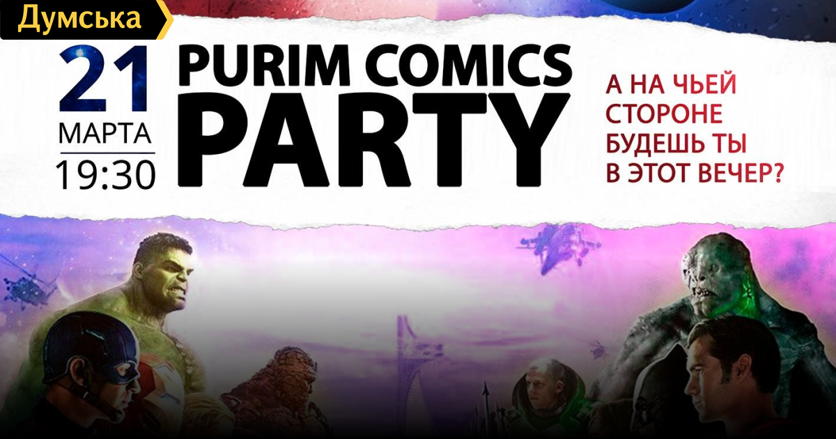 21 марта Израильский культурный центр Натив устраивает в честь праздника Пурим костюмированную вечеринку в стиле комиксов. «Пурим – это всегда яркие и броские костюмы. В этом году Израильский культурный центр Натив совместно с ЕМЦ «Гилель» проведет вечеринку для всех от 18-ти до 35-ти лет в стиле комиксов Marvel и DC!» — отмечают организаторы. Гостей праздника ожидает шоу-программа, дискотека и, конечно же, конкурсы с призами. Purim Comics Party пройдет в четверг, 21 марта, в караоке-ресторане Vanity на Екатерининской, 23. Начало в 19:30. Вход — по предварительной регистрации. СМЕРТЬ РОСІЙСЬКИМ ОКУПАНТАМ! Помітили помилку? Виділяйте слова з помилкою та натискайте control-enter |