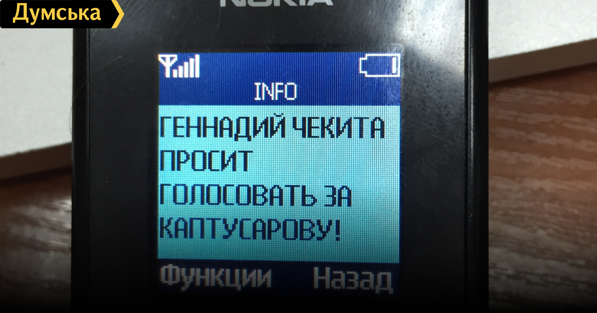 Вечером, 25 октября, в день, когда вся агитация запрещена, одесситы стали получить SMS-сообщения, направленные против кандидата в народные депутаты от Блока Петра Порошенко по 134 округу (Малиновский район Одессы) Геннадия Чекиты. Сообщения содержат следующий текст: «Геннадий Чекита просит голосовать за Каптусарову». Некоторые абоненты получили около 20 таких SMS. Цель спама очевидна — оттянуть голоса у Чекиты или хотя бы вызвать к нему неприязнь. Несмотря на то, что Наталья Каптусарова известна как соратник Геннадия Чекиты (они вместе объявляли голодовку после выборов 2012 года), Чекита свою кандидатуру не снимал и за кого-то, кроме себя, голосовать не призывал. СМЕРТЬ РОСІЙСЬКИМ ОКУПАНТАМ! Помітили помилку? Виділяйте слова з помилкою та натискайте control-enter