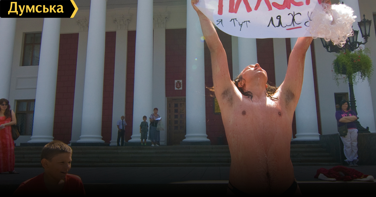 "Мужик в стрингах" в 2012 году протестовал под мэрией против платных пляжей