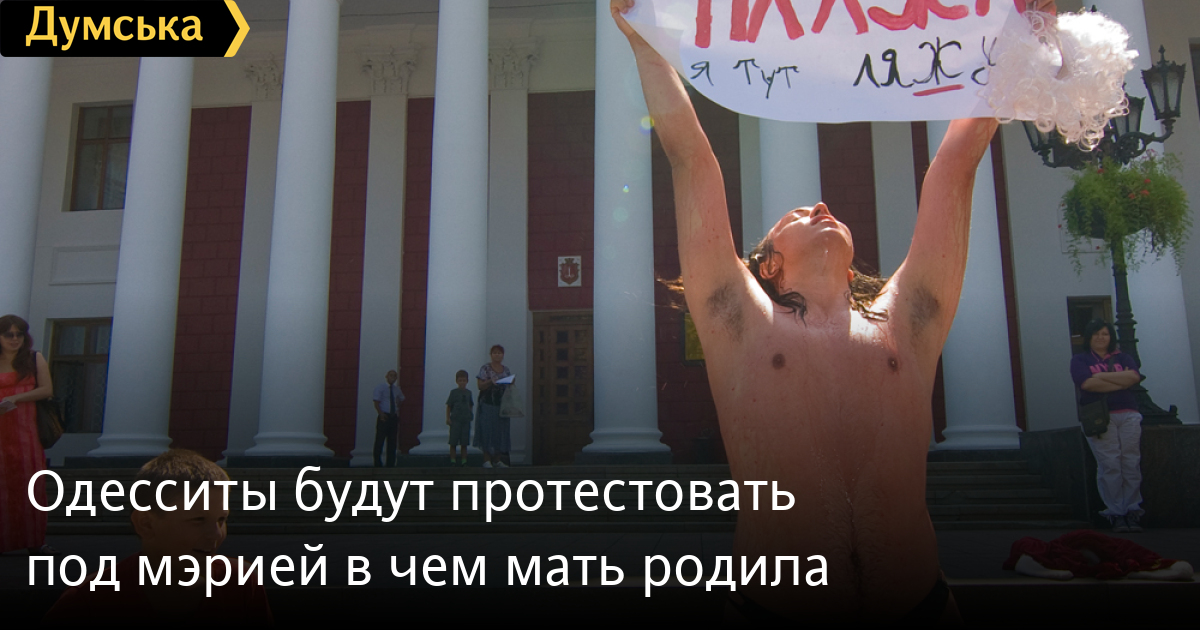 Участники акции во главе со скандально известным экс-активистом FEMEN Евгением Довлатовым, более известным одесситам как «мужик в стрингах» соберется у главного входа в горсовет 5 июня. По словам организаторов, акция протеста пройдет под лозунгами: «Голые и обманутые», «Живем как звери», «Подай на Украину», «Бомжи в законе».
