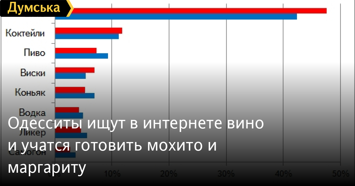По данным исследователей, одесситы ищут спиртные напитки на 4% чаще, чем в среднем по другим исследованным регионам Украины.