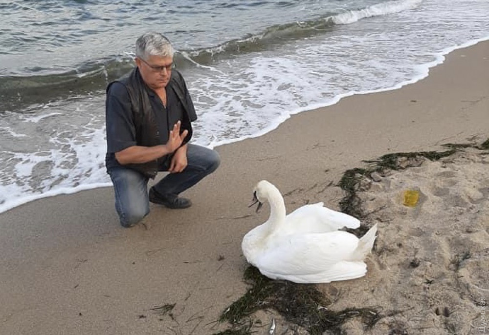 Истощенного и ослабленного лебедя обнаружили одесситы в районе пляжа «Отрада».