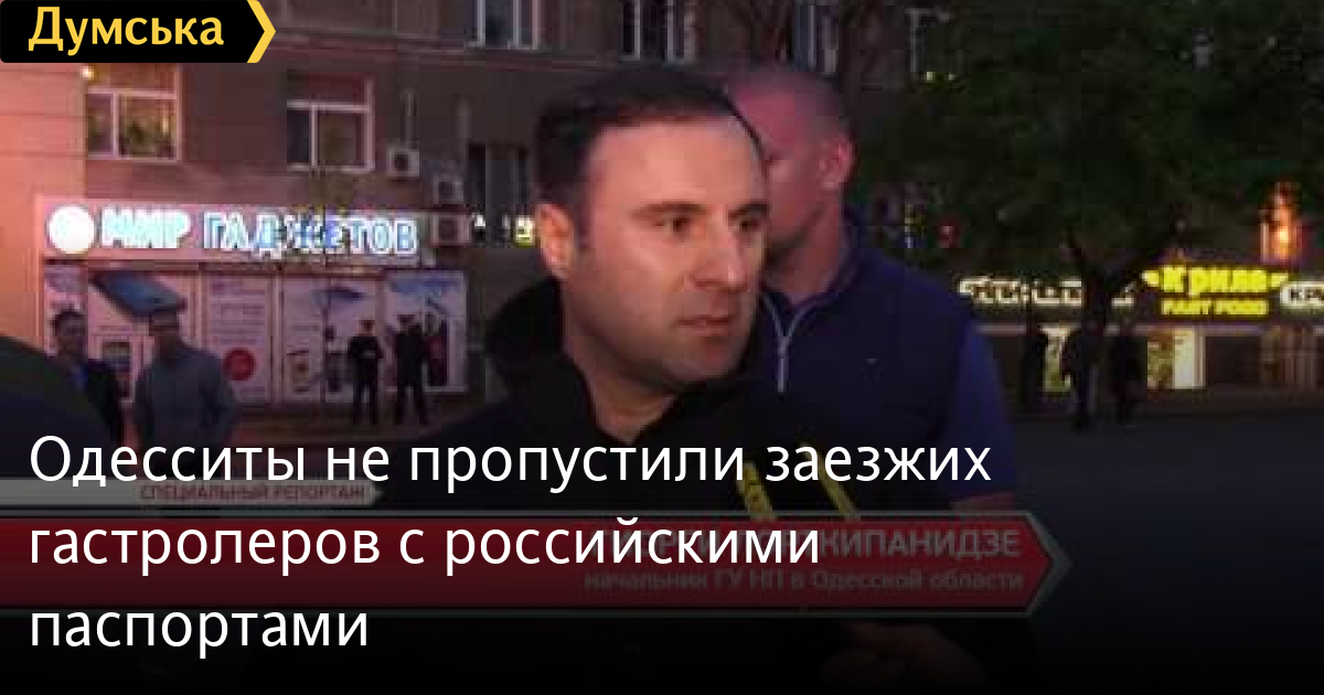 Одесситы не пропустили заезжих гастролеров с российскими паспортами – заявил Михаил Саакашвили. Годовщина трагедии 2го мая прошла мирно и без серьезных потасовок. СМЕРТЬ РОССИЙСКИМ ОККУПАНТАМ! Заметили ошибку? Выделяйте слова с ошибкой и нажимайте control-enter Думская ТВ. Сюжеты: