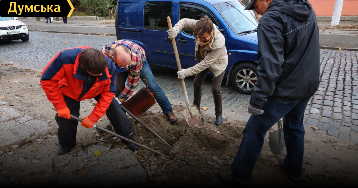Французский бульвар: «Активисты различных общественных организаций Одессы провели 6 акций, за время которых избавили от асфальта более 60 лунок, начали корчевать в них пни и сажать молодые деревья. Эта деятельность обеспокоила городского голову Одессы Генадия Труханова, который дал распоряжение штрафовать активистов за высадку деревьев. Причиной такой реакции, вероятно, стали тайные планы городских властей по расширению Французского бульвара до 4-х полос в интересах строительных фирм.» Видео: