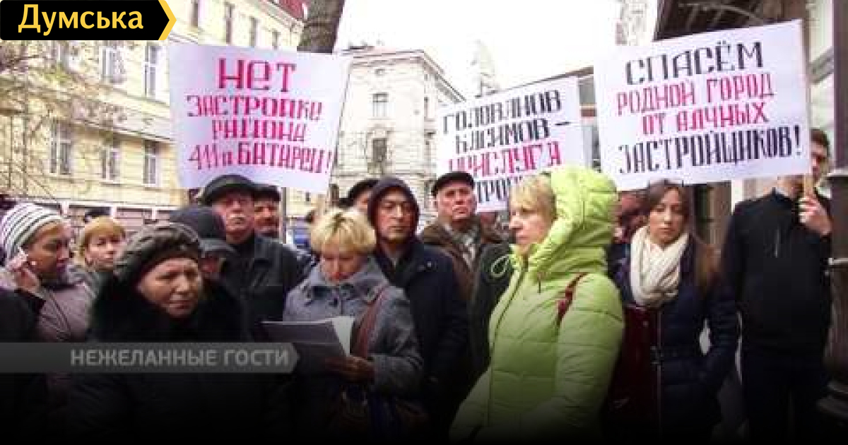 Одесситы – нежеланные гости в мэрии. Жители дачи Ковалевского около часа провели в коридоре управления архитектуры и градостроительства. В актовый зал их так и не пустили. Протестующие недовольны высотным строительством домов, которые могут появиться в районе 411 Батареи.