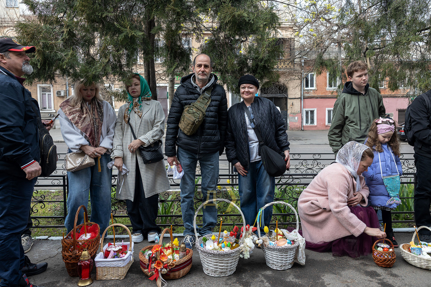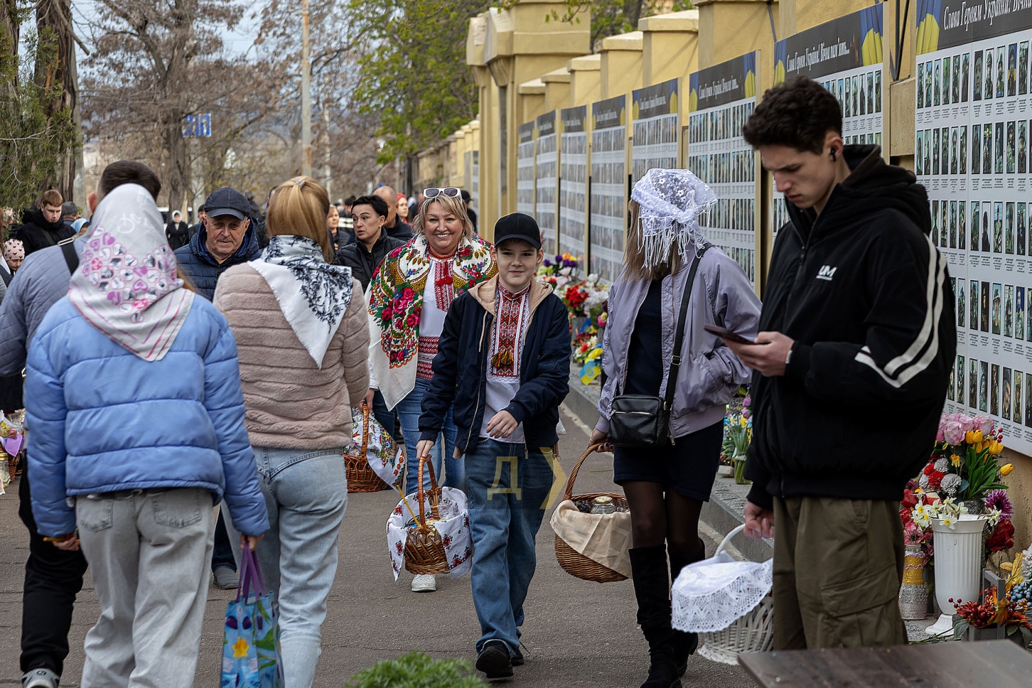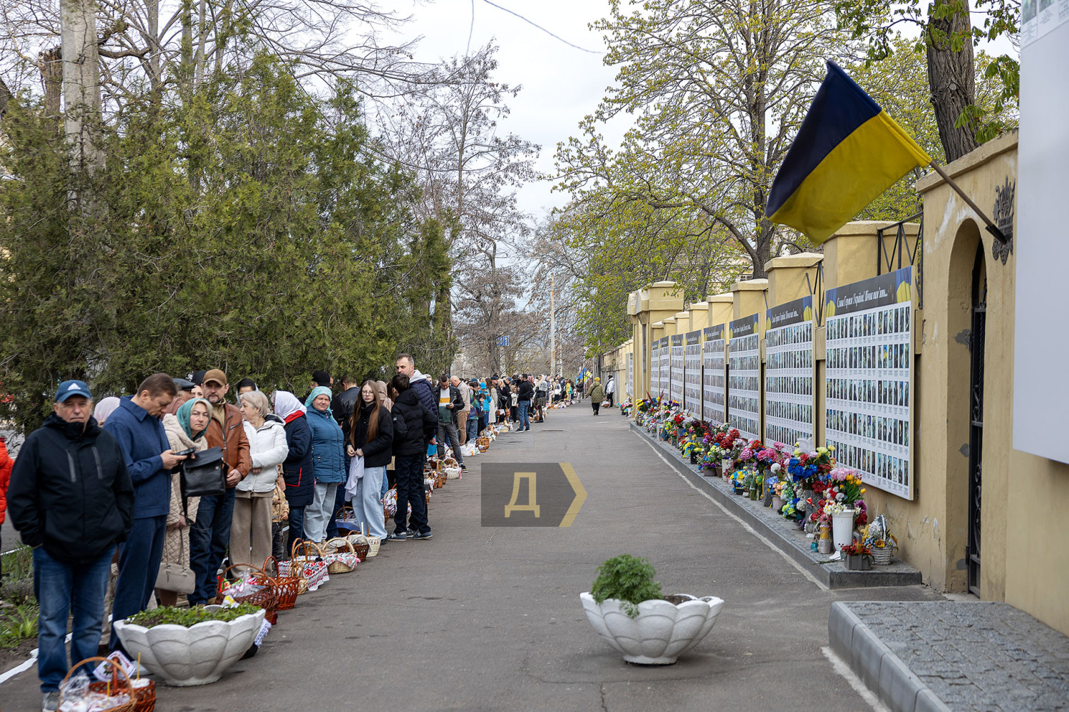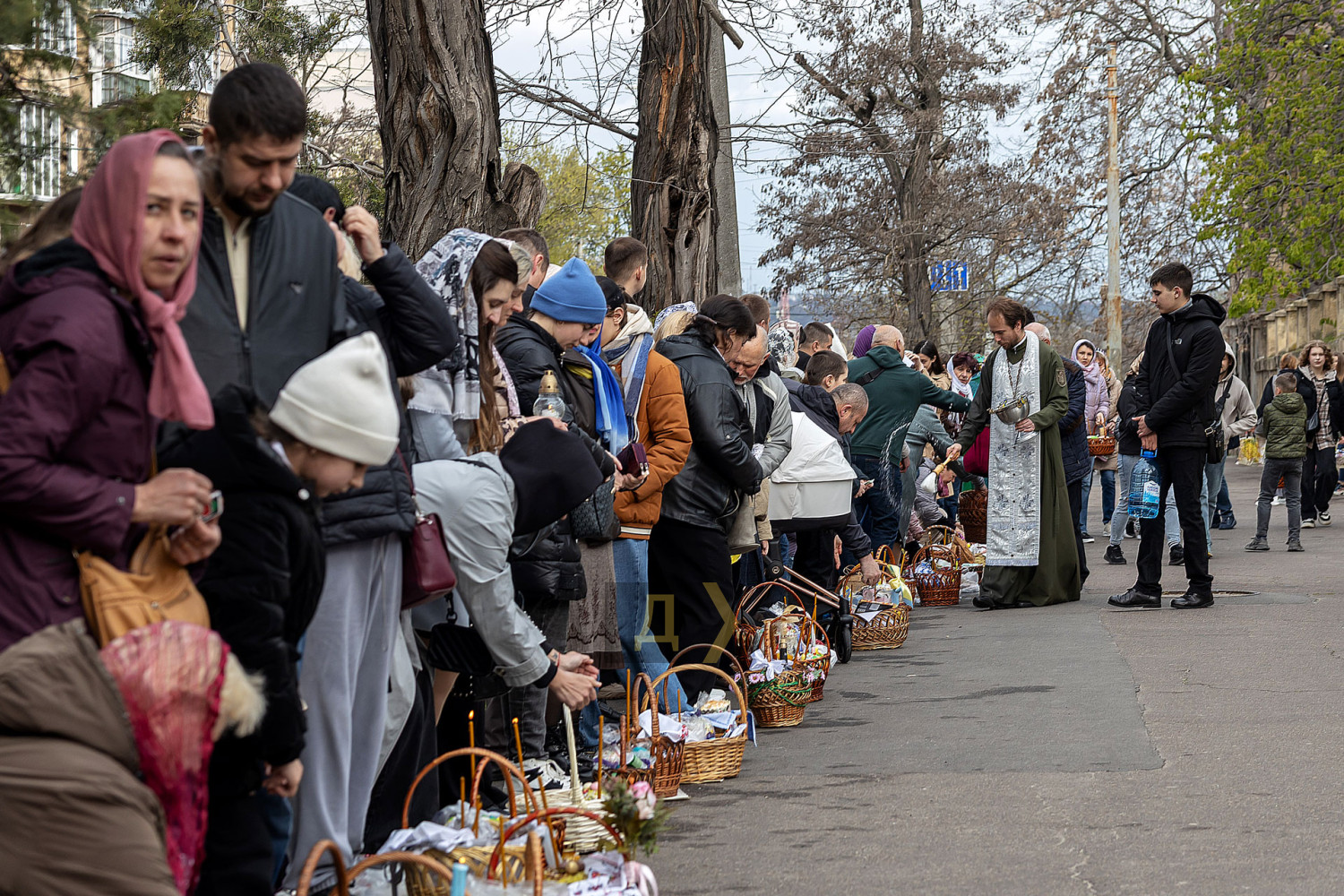 Светлый праздник Воскресения Христова отмечают сегодня православные одесситы. С раннего утра к городским храмам верующие приходят освятить пасхальные корзинки, передает корреспондент «Думской». Улицы возле церквей едва вмещают всех желающих. Так, на Пастера у кафедрального собора Рождества Христова шеренги прихожан с корзинками вытянулись от Сеченова до Новосельского. Помощник священника едва успевает бегать в храм за новой порцией святой воды, а полицейским пришлось перекрыть Пастера от автотранспорта. Горожане одеты по-праздничному, многие — в вышиванках. Люди охотно улыбаются, поздравляют друг друга, приходят целыми семьями. Некоторые привели с собой питомцев — святой водой окропляют не только людей, но и собак, котов и даже кроликов, которые пытаются увернуться от брызг. На стене храма размещен мемориал погибшим украинским воинам. Возле фотографий героев на колени становятся их родственники. Многолюдно сегодня у каждого одесского храма — Пасха остается одним из самых объединяющих праздников для горожан даже в условиях войны. СМЕРТЬ РОССИЙСКИМ ОККУПАНТАМ! Заметили ошибку? Выделяйте слова с ошибкой и нажимайте control-enter |