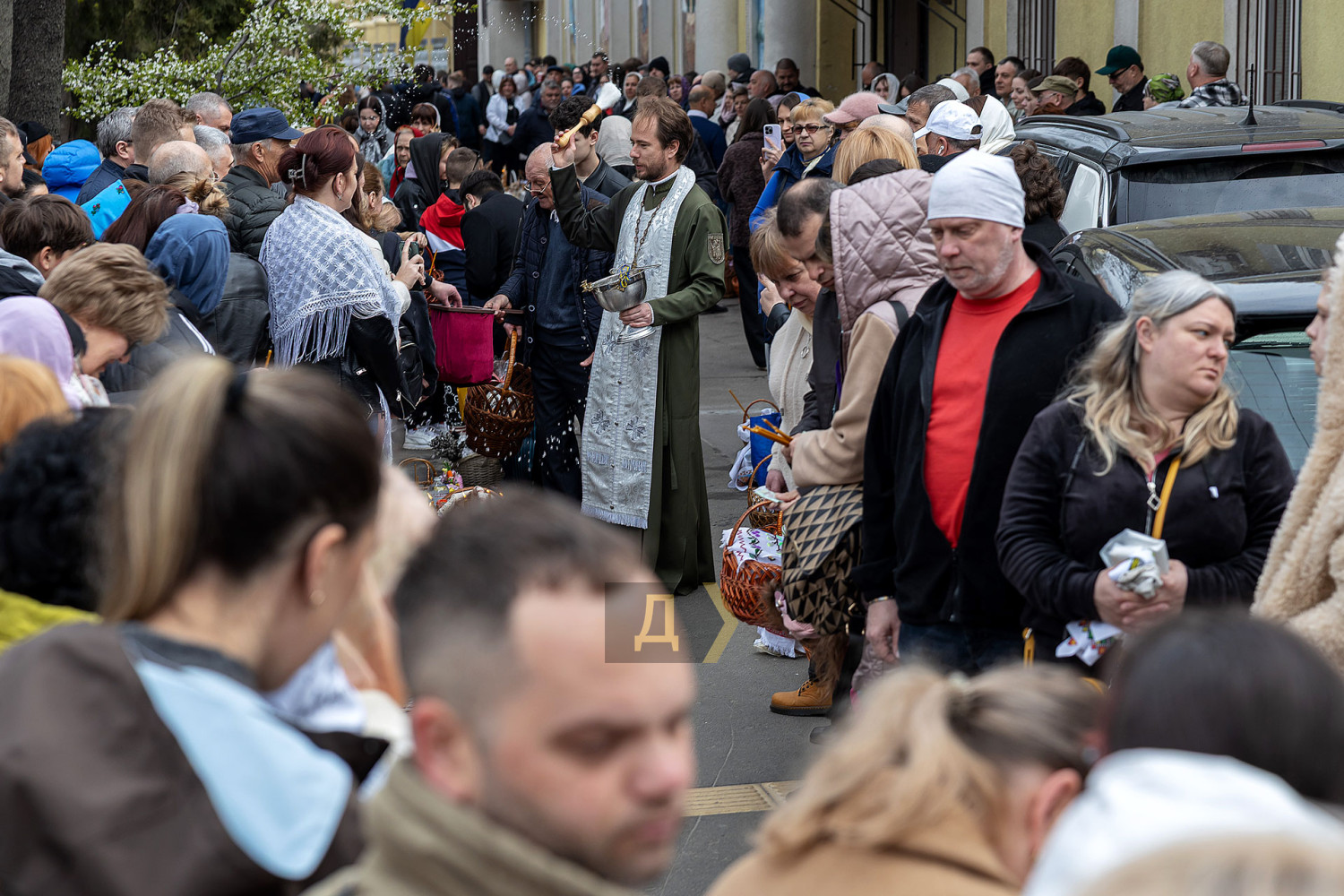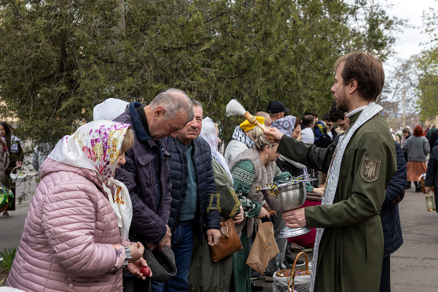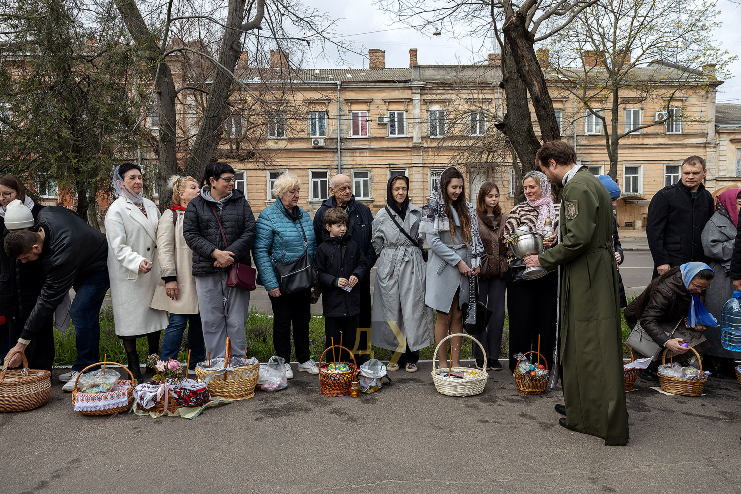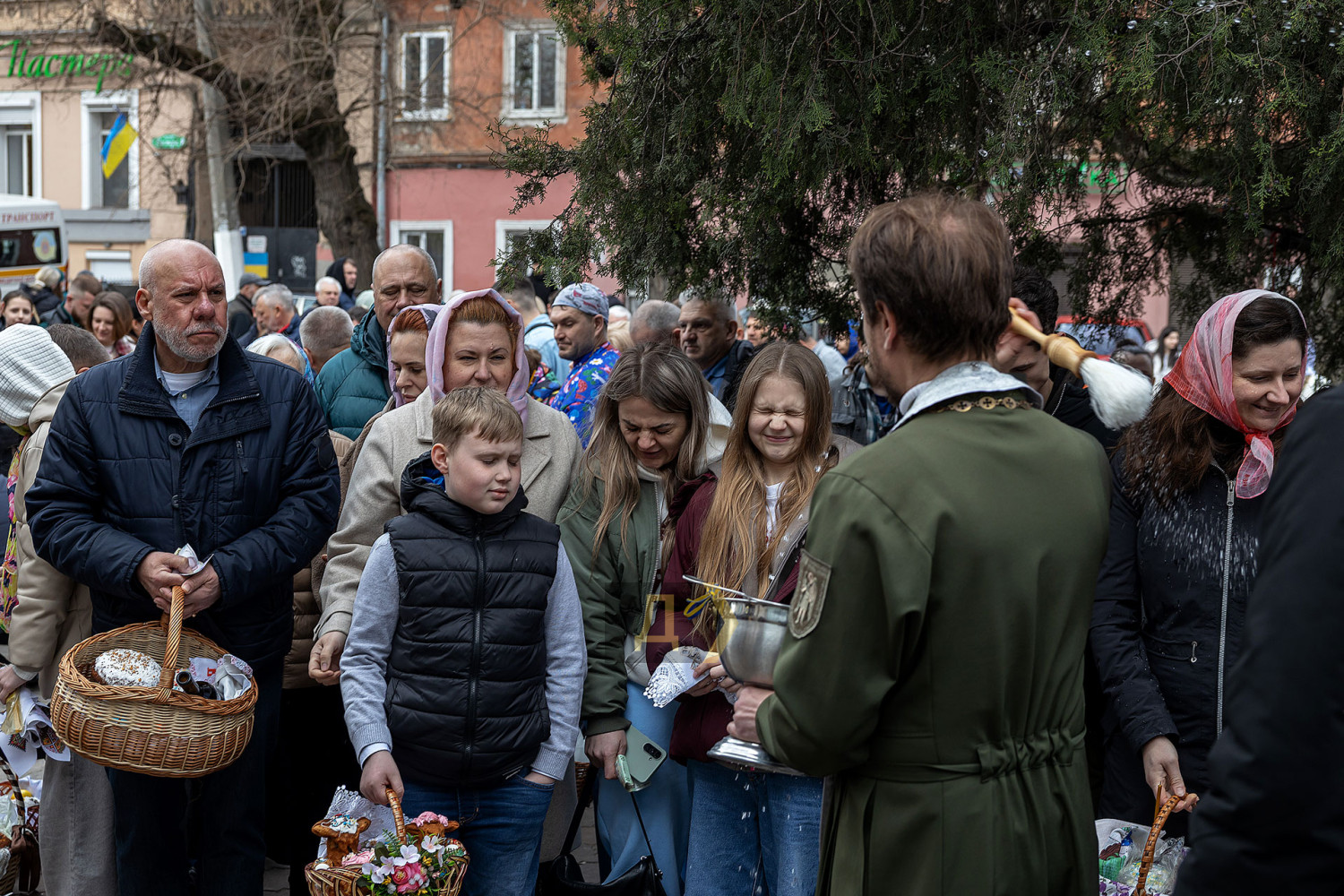 Светлый праздник Воскресения Христова отмечают сегодня православные одесситы. С раннего утра к городским храмам верующие приходят освятить пасхальные корзинки, передает корреспондент «Думской». Улицы возле церквей едва вмещают всех желающих. Так, на Пастера у кафедрального собора Рождества Христова шеренги прихожан с корзинками вытянулись от Сеченова до Новосельского. Помощник священника едва успевает бегать в храм за новой порцией святой воды, а полицейским пришлось перекрыть Пастера от автотранспорта. Горожане одеты по-праздничному, многие — в вышиванках. Люди охотно улыбаются, поздравляют друг друга, приходят целыми семьями. Некоторые привели с собой питомцев — святой водой окропляют не только людей, но и собак, котов и даже кроликов, которые пытаются увернуться от брызг. На стене храма размещен мемориал погибшим украинским воинам. Возле фотографий героев на колени становятся их родственники. Многолюдно сегодня у каждого одесского храма — Пасха остается одним из самых объединяющих праздников для горожан даже в условиях войны. СМЕРТЬ РОССИЙСКИМ ОККУПАНТАМ! Заметили ошибку? Выделяйте слова с ошибкой и нажимайте control-enter |