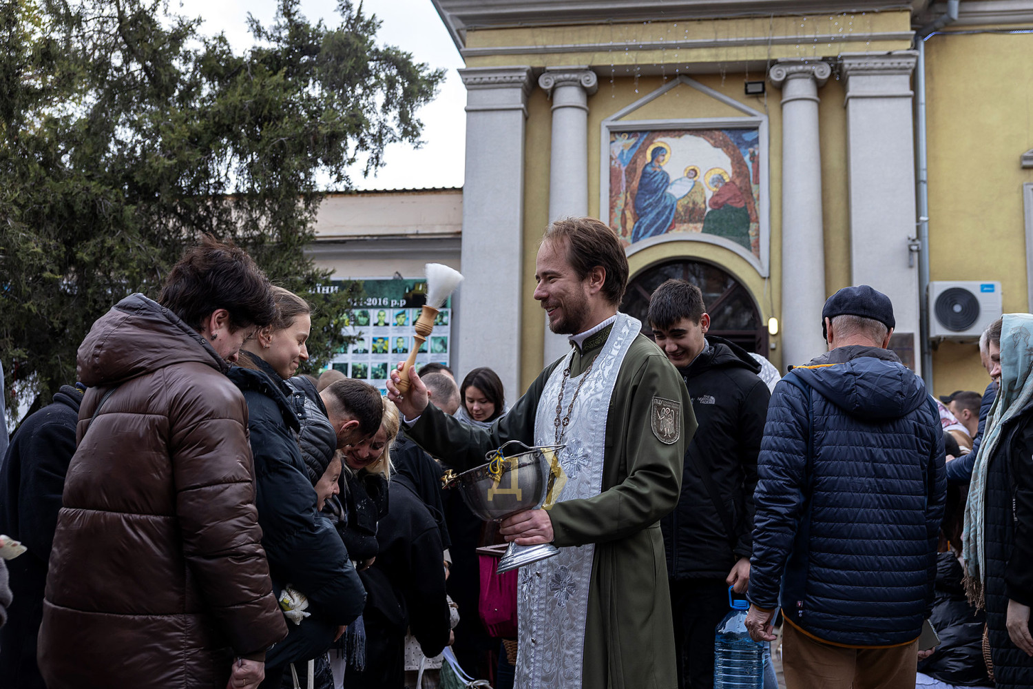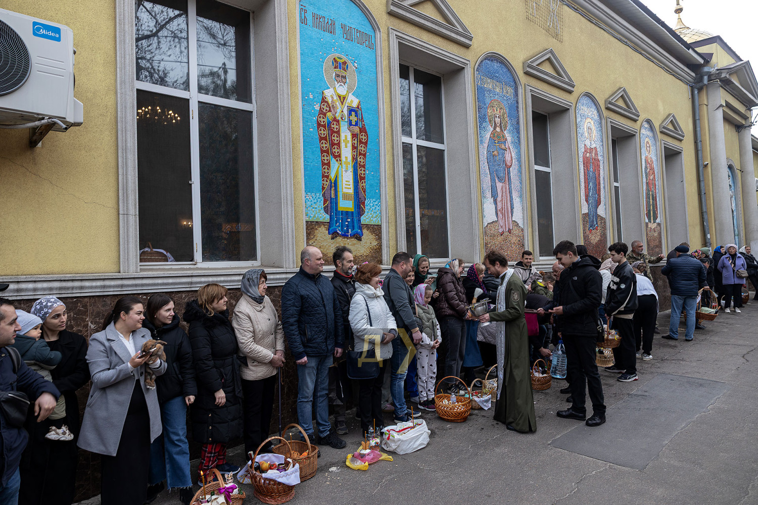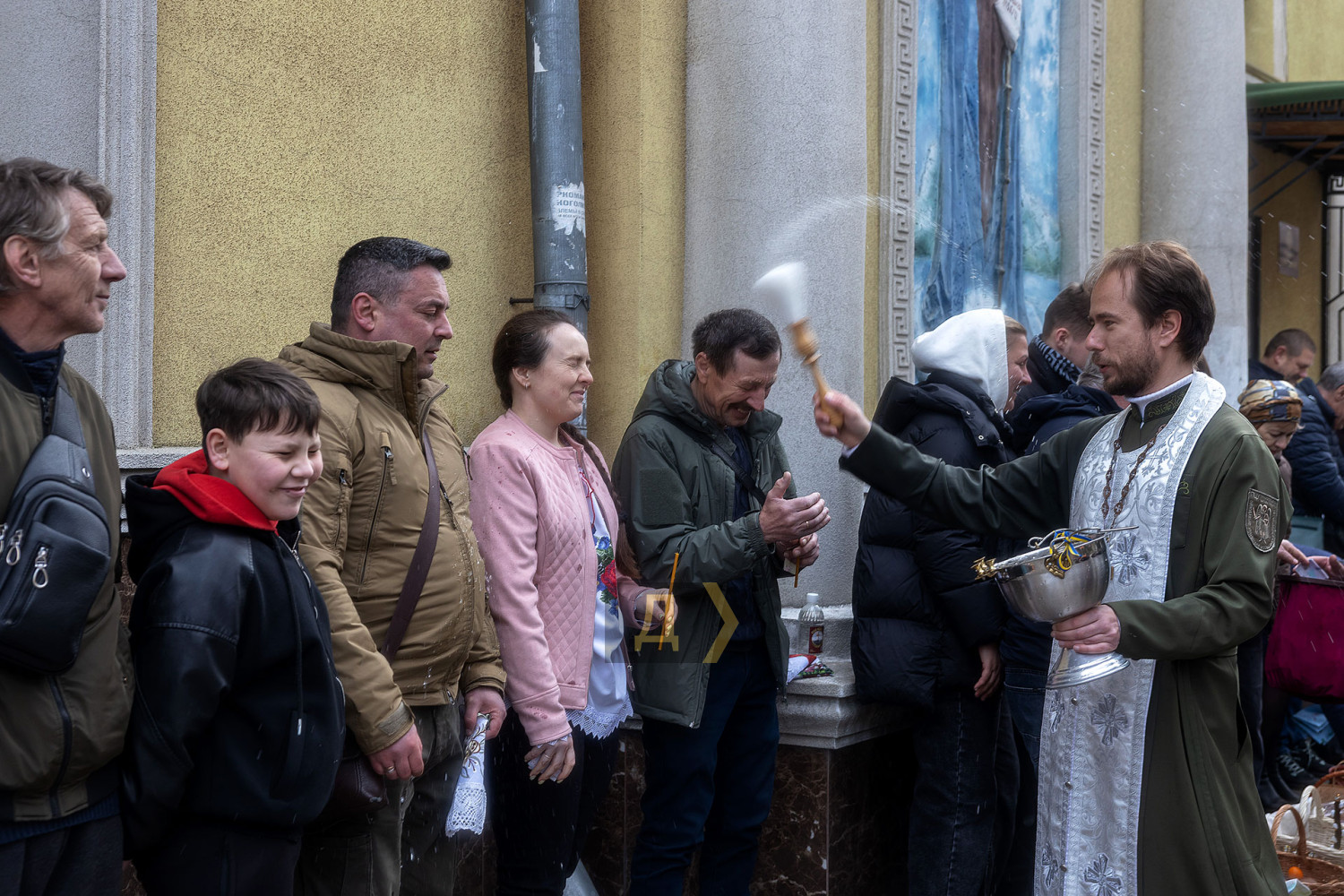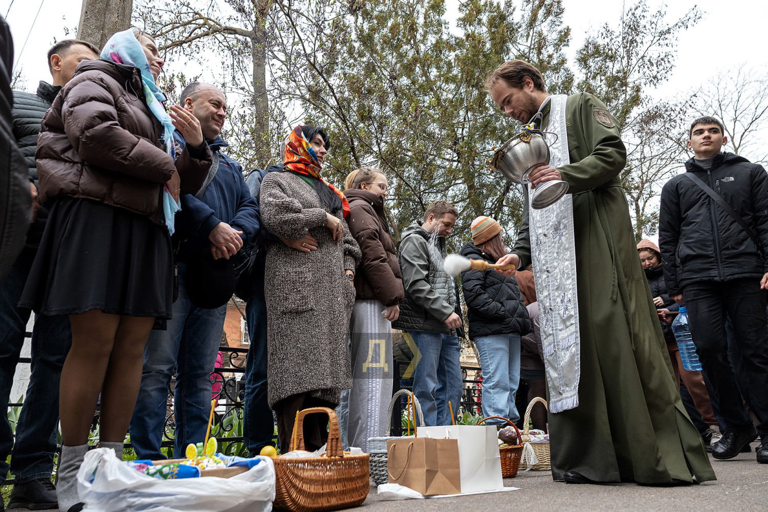 Светлый праздник Воскресения Христова отмечают сегодня православные одесситы. С раннего утра к городским храмам верующие приходят освятить пасхальные корзинки, передает корреспондент «Думской». Улицы возле церквей едва вмещают всех желающих. Так, на Пастера у кафедрального собора Рождества Христова шеренги прихожан с корзинками вытянулись от Сеченова до Новосельского. Помощник священника едва успевает бегать в храм за новой порцией святой воды, а полицейским пришлось перекрыть Пастера от автотранспорта. Горожане одеты по-праздничному, многие — в вышиванках. Люди охотно улыбаются, поздравляют друг друга, приходят целыми семьями. Некоторые привели с собой питомцев — святой водой окропляют не только людей, но и собак, котов и даже кроликов, которые пытаются увернуться от брызг. На стене храма размещен мемориал погибшим украинским воинам. Возле фотографий героев на колени становятся их родственники. Многолюдно сегодня у каждого одесского храма — Пасха остается одним из самых объединяющих праздников для горожан даже в условиях войны. СМЕРТЬ РОССИЙСКИМ ОККУПАНТАМ! Заметили ошибку? Выделяйте слова с ошибкой и нажимайте control-enter |