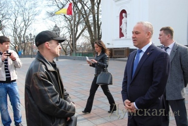 К митингующим одесситам вышел первый вице-мэр Одессы Николай Ильченко. Он заверил одесситов, что народнохозяйственный мэр и его команда ежедневно работают в этом направлении: «В деле наведения порядка со стихийной торговлей и очистки улиц родного города от уродливых и незаконных МАФов одесситы и мэрия едины. Руководство города активно борется с незаконными торговыми объектами и результаты этой битвы одесситы видят своими глазами. Ежедневно сносятся будки в различных районах Одессы. С начала года почти сто объектов уже демонтировано, а это значит, что почти по ста адресам из-под полы не разливается спиртное, не продаются детям сигареты и не нарушается общественный порядок и тишина круглосуточной торговлей.