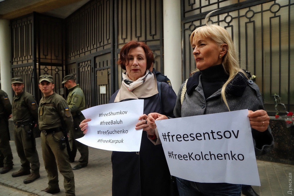 Акция в поддержку украинского режиссера Олега Сенцова и других политических узников, которых незаконно удерживают в тюрьмах страны-агрессора, прошла сегодня под стенами Российского консульства.