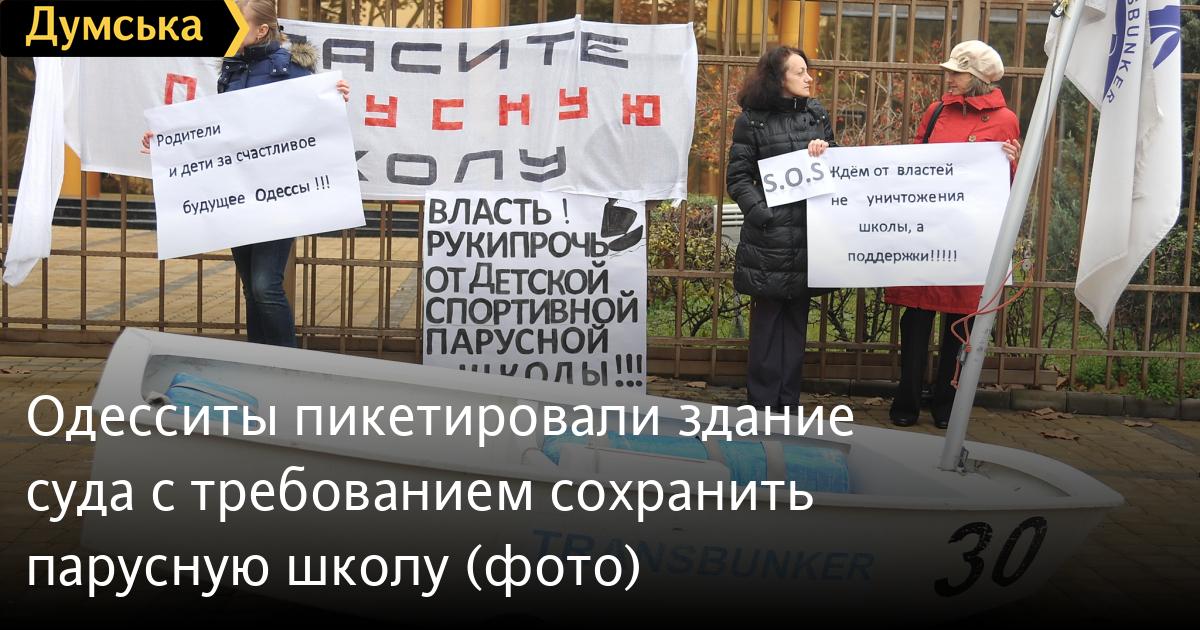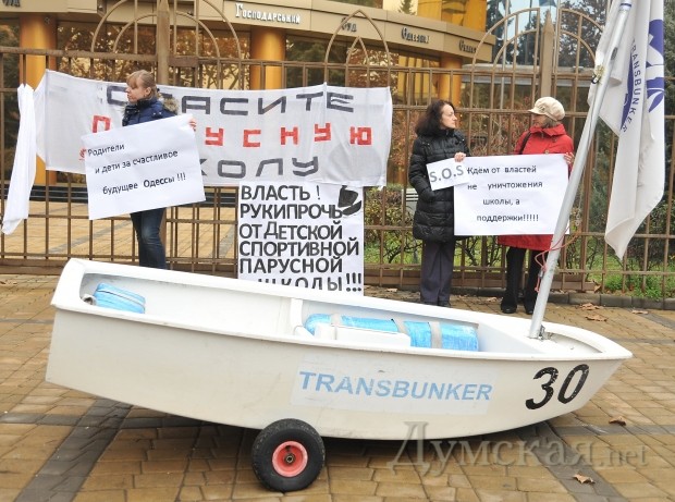 По словам митингующих, прокуратура через суд добилась признания незаконным договор о совместной деятельности между Черноморским яхт-клубом, где расположена школа, и компанией.