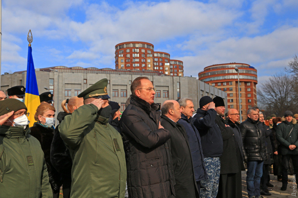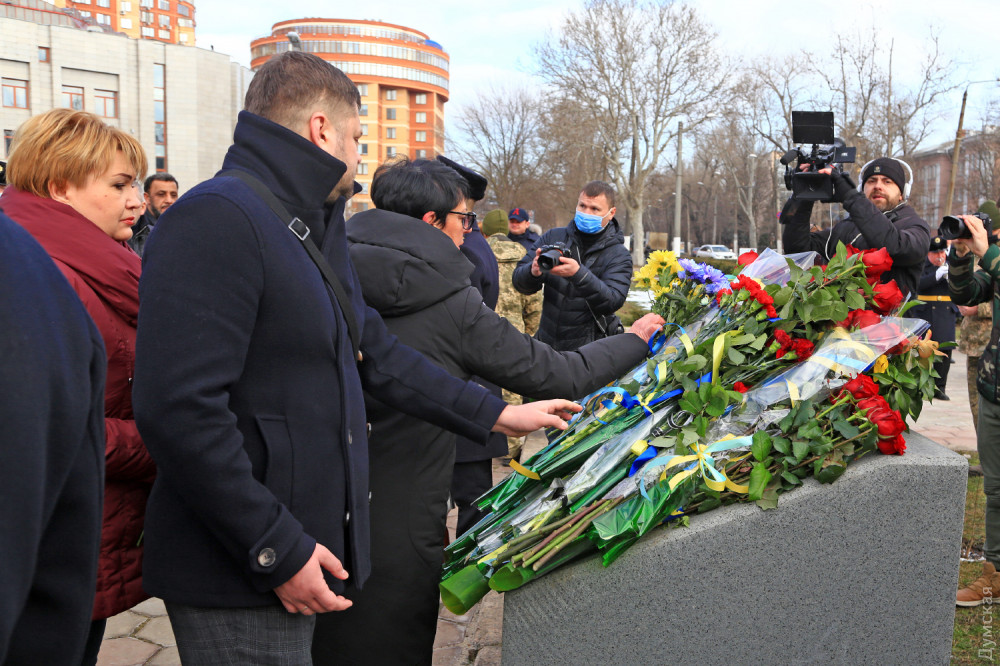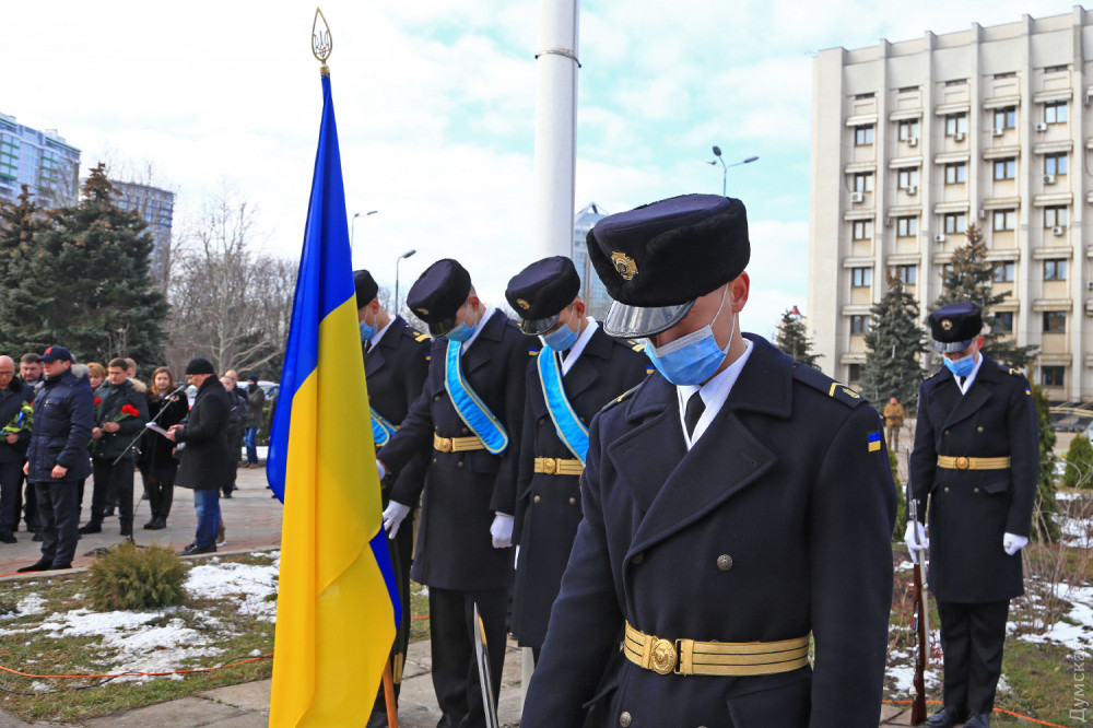 В 10 часов руководство города и области, военные, представители духовенства, активисты патриотических организаций и простые граждане Одессы почтили память жертв Революции Достоинства.