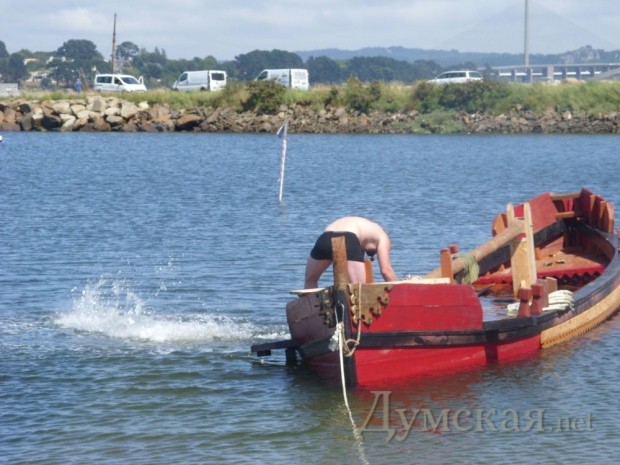 «В ладью начала поступать вода, — говорит Сергей Рябоконь, – Мы ее вычерпывали, потом задействовали насос, который дали англичане. Но лодка все равно наполнялась чересчур быстро. Тогда мы вызвали спасателей. Прибыло сразу два пожарных катера, которые по ошибке включили бранспойты и стали заливать «Анну» водой, вместо того, чтобы ее откачивать… В общем, едва не потонули. Хотя то, что лодка будет на первых порах протекать, мы знали: так всегда происходит с только построенным судном, которое еще набухло, как следует. То же самое было нашим с «Мелькартом», который два дня набирал воду».